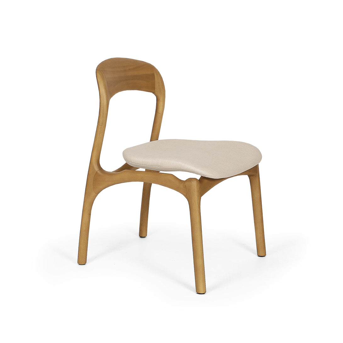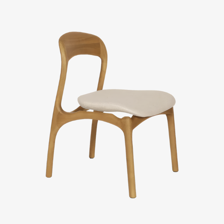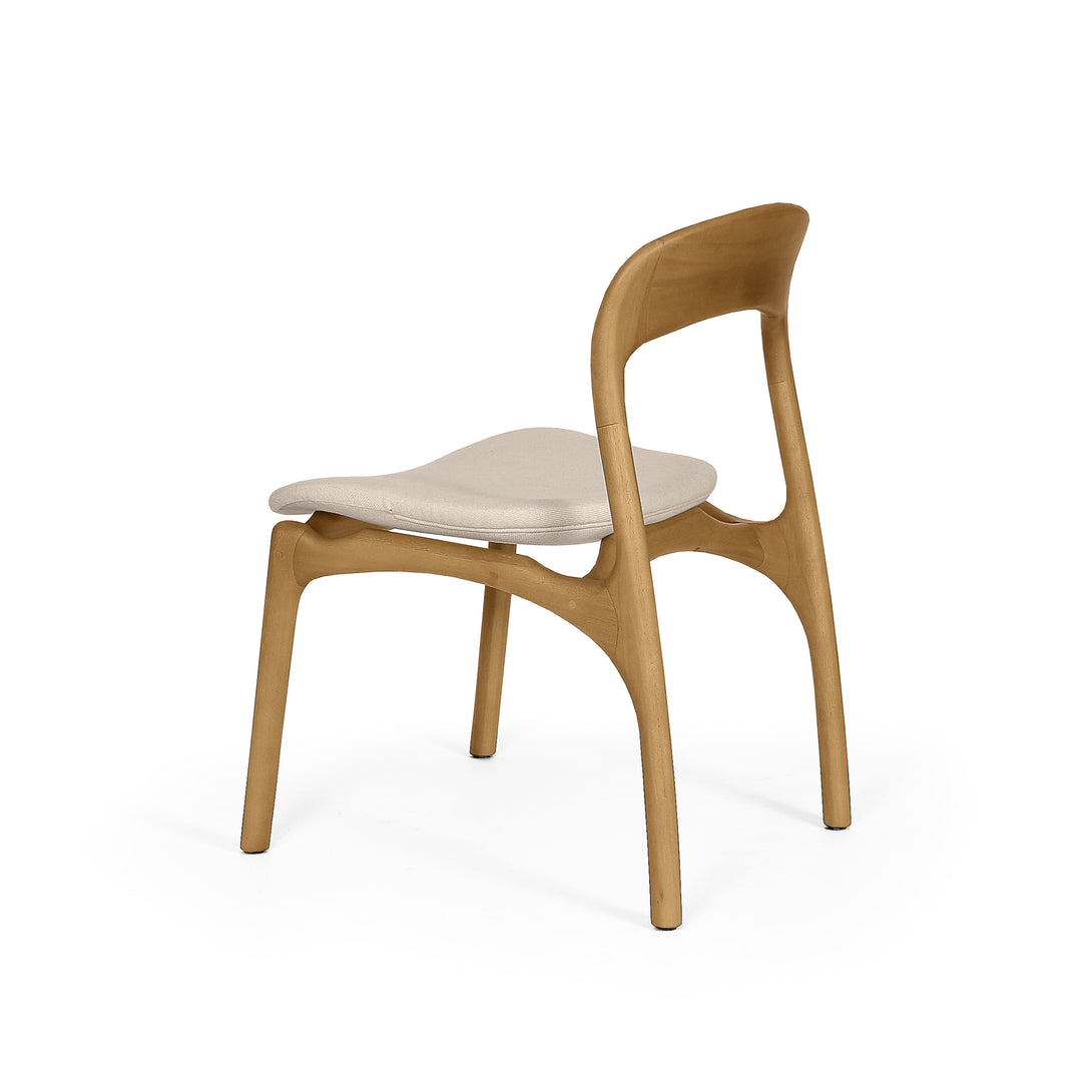 The Arco Chair stands out with its fluid, elegant lines inspired by the shape of an arch, balancing lightness and strength in a timeless design. Crafted in solid wood, its structure ensures durability, while the upholstered fabric seat provides lasting comfort. The gently curved backrest embraces the body, offering both ergonomics and well-being.