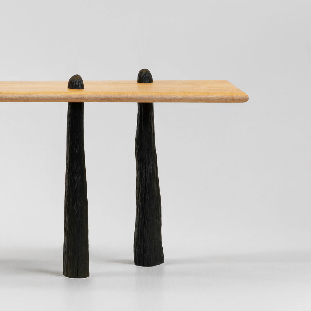 The Baca sideboard is born from the contemplation of a natural phenomenon that transcends time: the formation of stalagmites — mineral structures that reveal the silent power of nature shaping matter. The name Baca is a reference to the Bacaetava Grotto, located in Paraná, the same state where the studio is based.