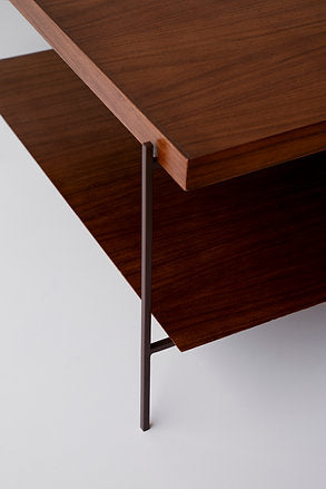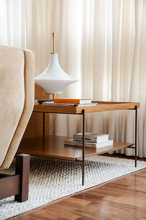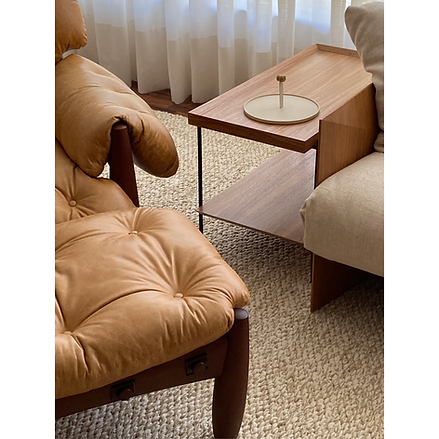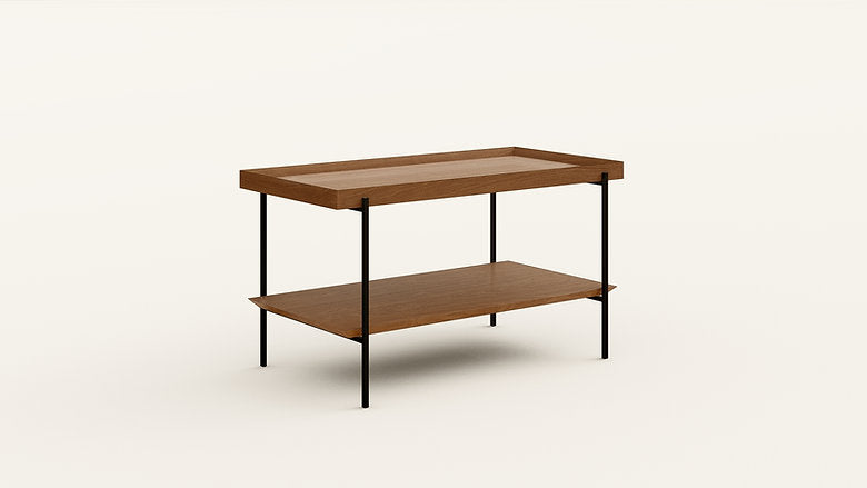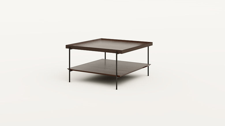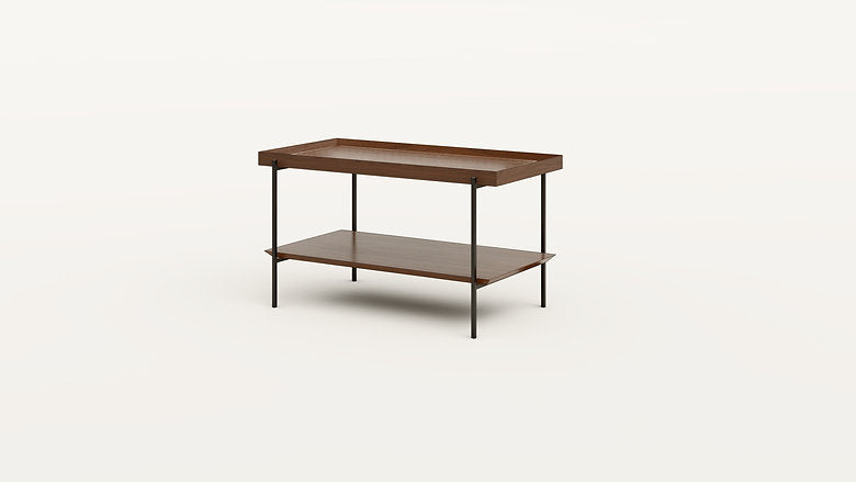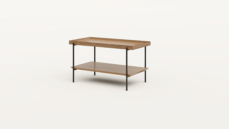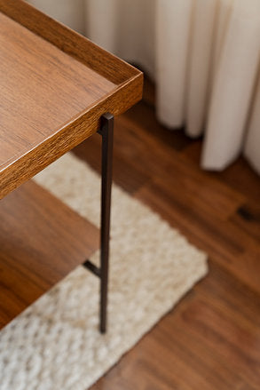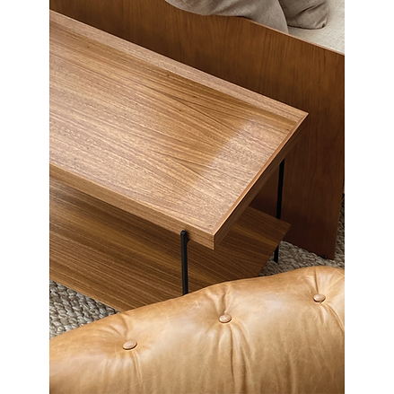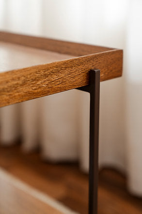 The BANDEJA table is a versatile element in decor. Its minimalist design blends harmoniously into a variety of spaces. The wooden trays are supported by a slender metal structure that almost vanishes from view. The combination of elements stands out for its simplicity.