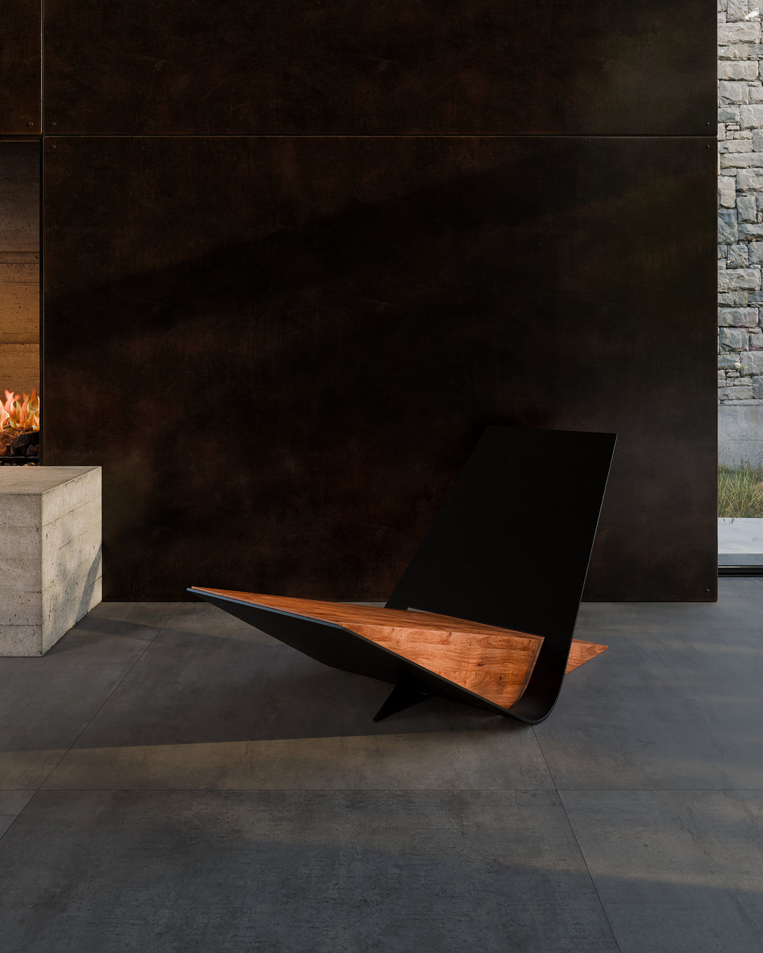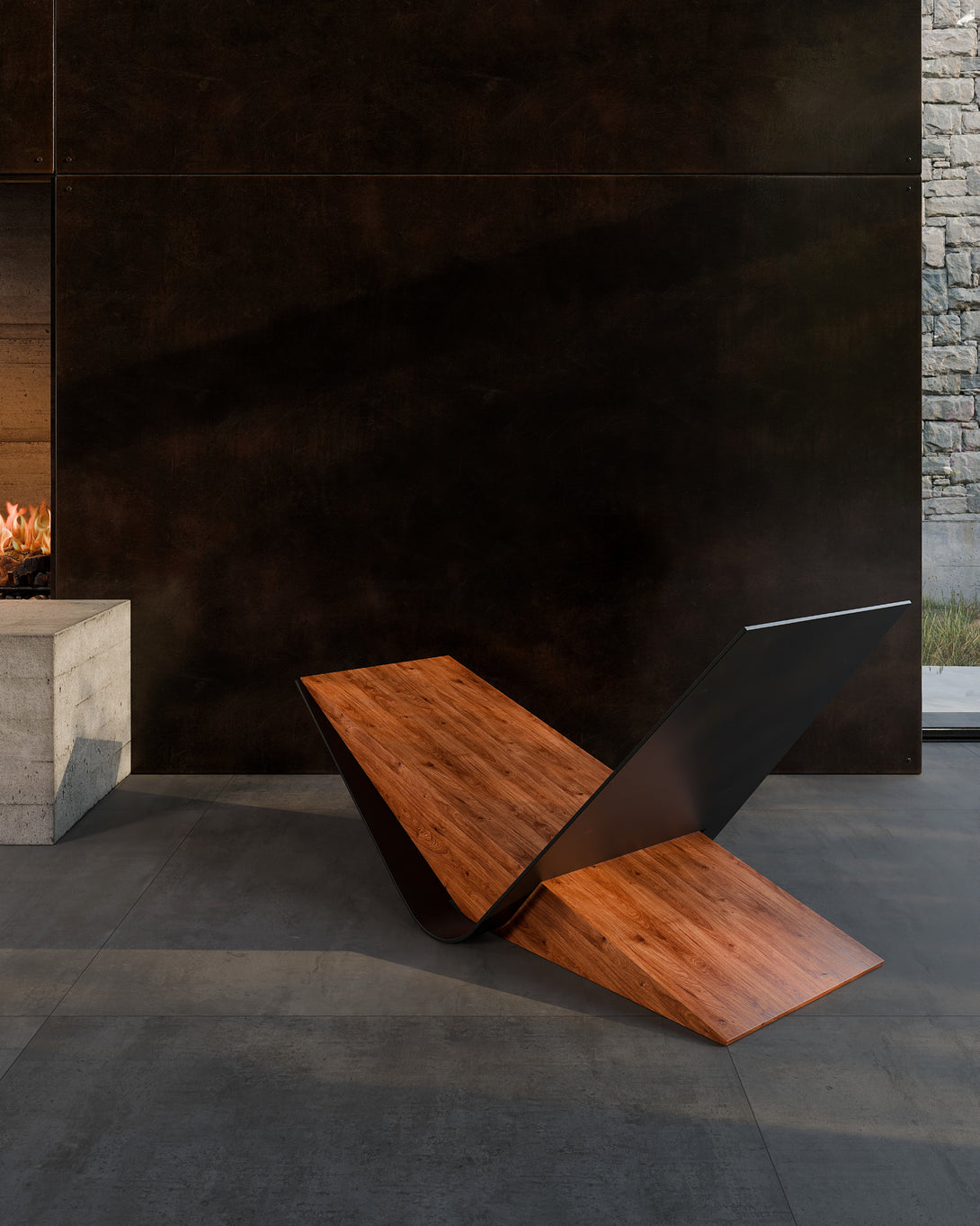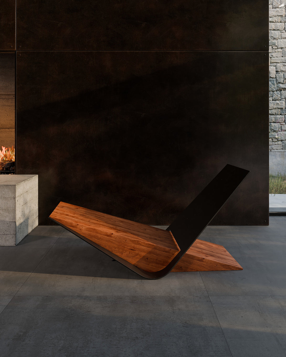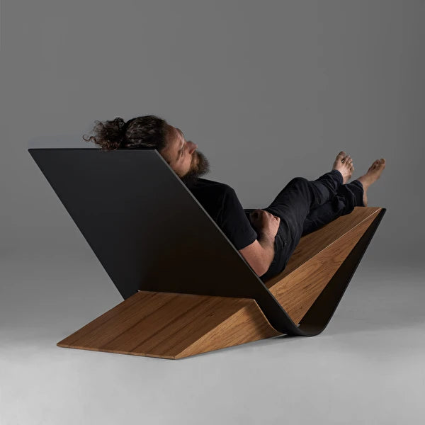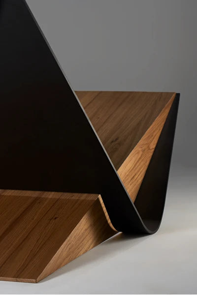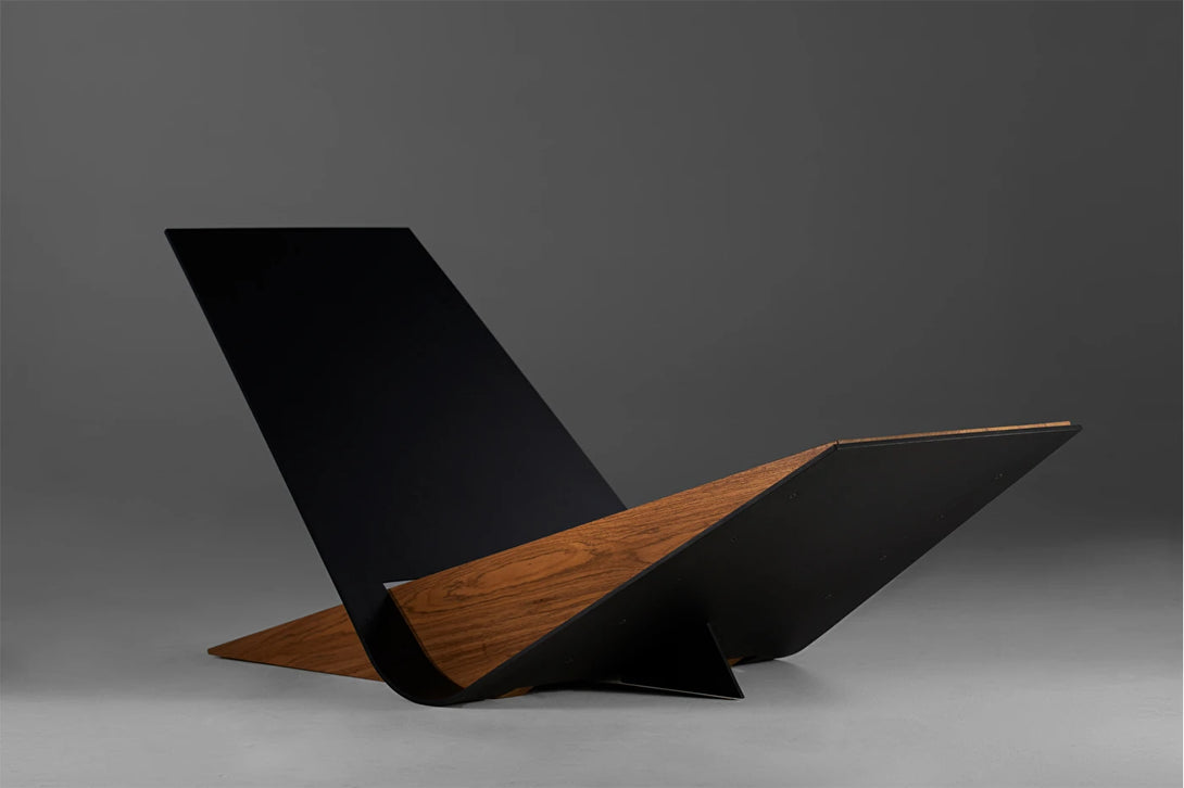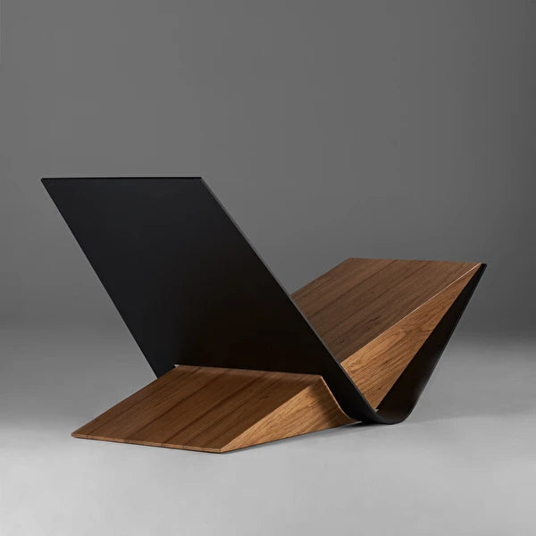 The Barca lounge chair is a stunning example of modern design, crafted from solid jequitibá wood and steel with an electrostatic paint finish. Its unique, geometric form provides an ergonomic and comfortable seating experience.