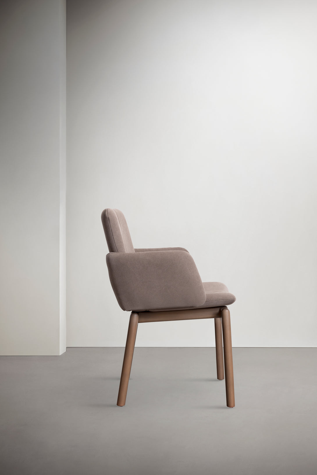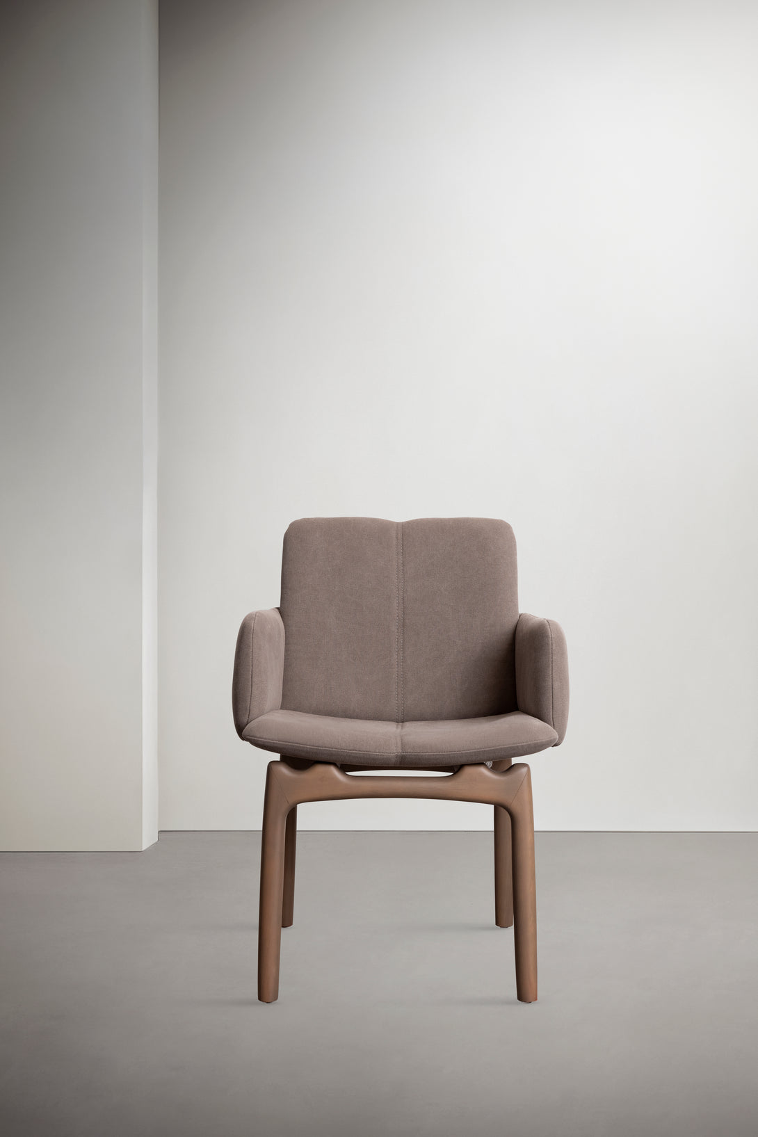 The Abraço Chair blends warmth and sophistication in a single design. Its solid wood structure ensures durability and a striking presence, while the soft fabric seat and backrest invite comfort. With curved, organic lines reminiscent of an embrace, it creates an immediate sense of coziness. Versatile and timeless, the piece adapts seamlessly to different settings — from living rooms to reading nooks — bringing elegance, comfort, and a welcoming atmosphere.