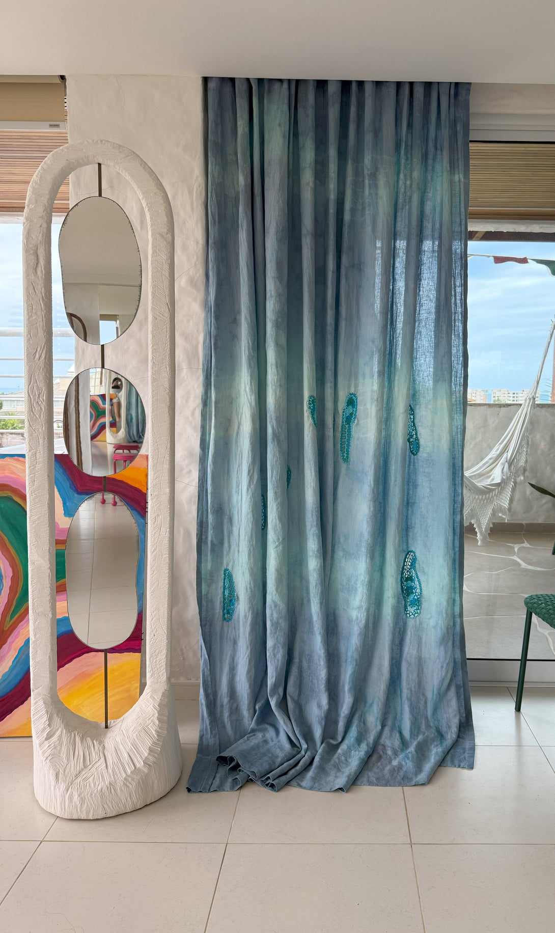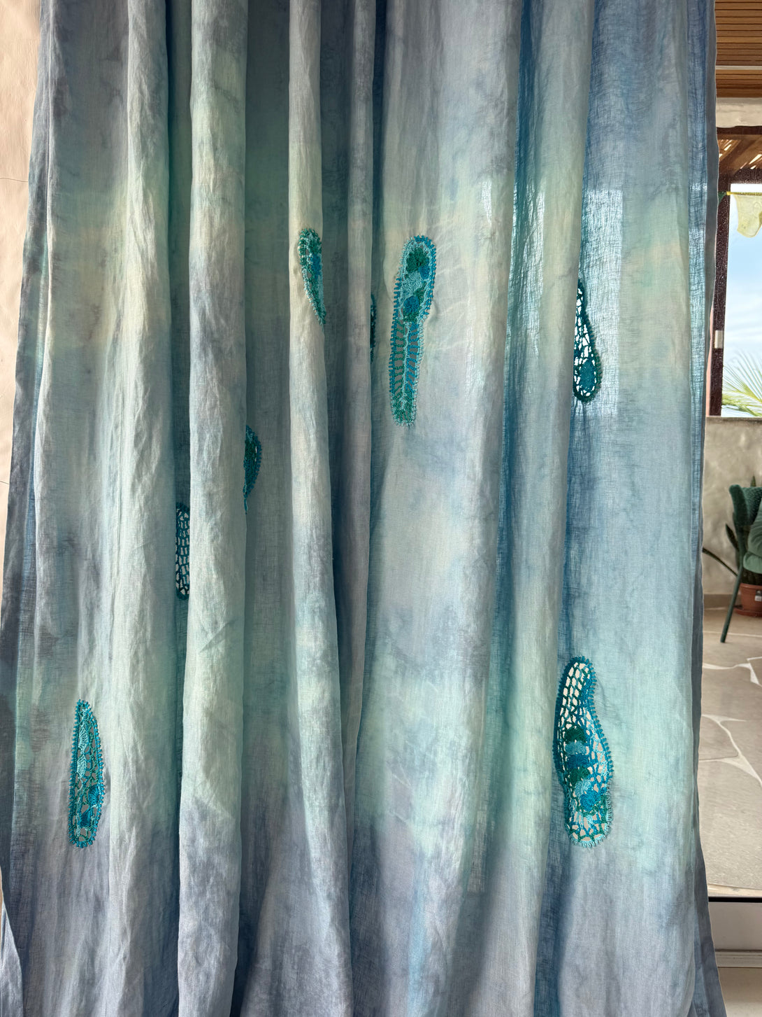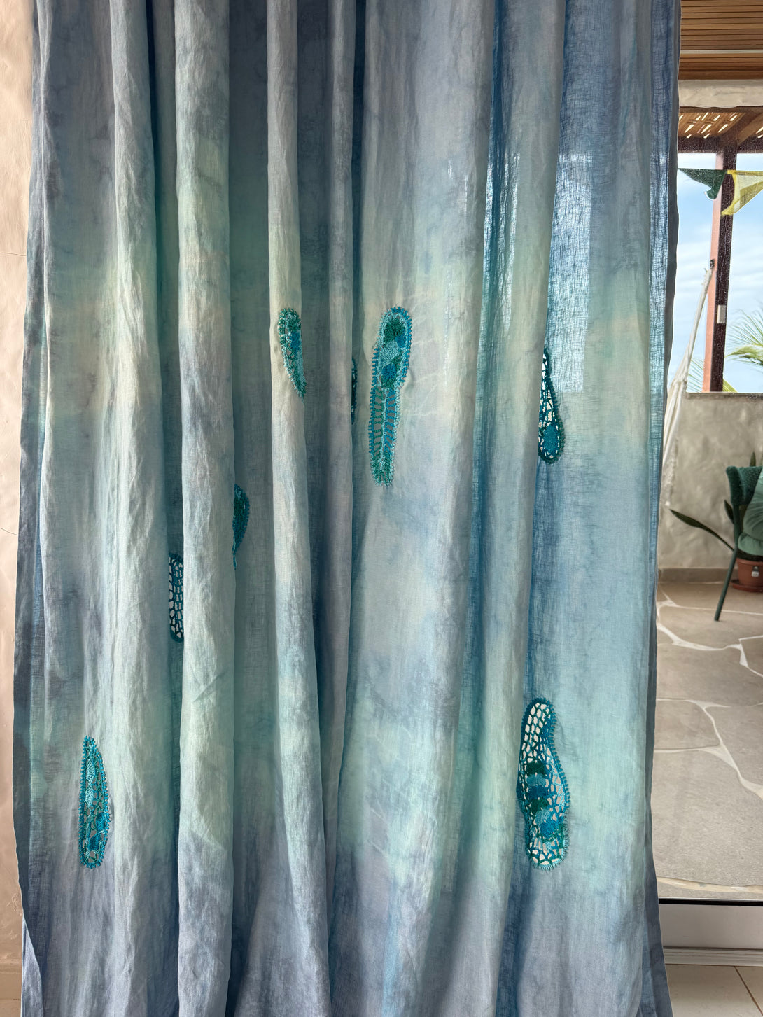 It can be a brand new curtain or one you already have at home. Just send it to us and we’ll do the manual work with great care and creativity.
