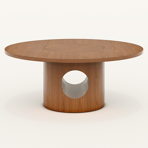 Its design emphasizes curved geometric shapes while maintaining a strong, distinctive character. The central base, featuring the signature circular void, reinforces its unique identity.