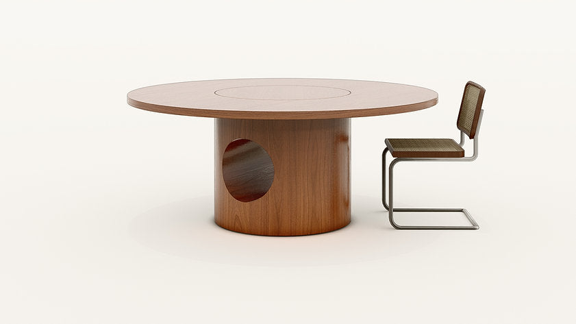 Dining table with a plywood frame covered with natural wood veneer and a tabletop in MDF covered with natural wood veneer.