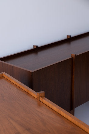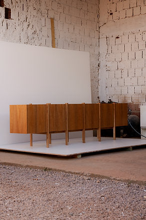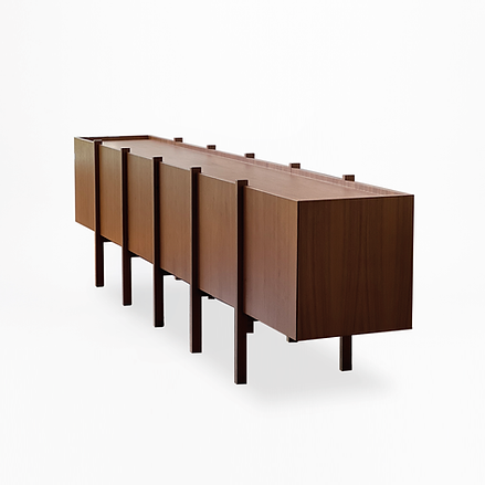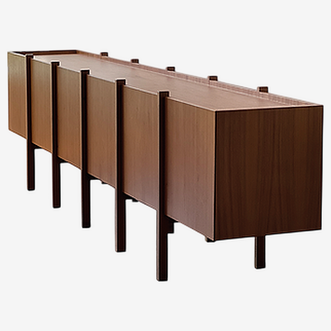With a homogeneous appearance from all sides, the PALAFITA buffet ensures aesthetic consistency from any viewing angle. This approach allows the buffet to be positioned in various ways within a space, whether parallel to a wall or as a central island.