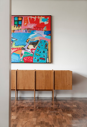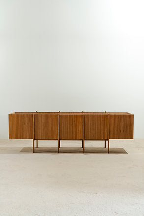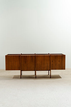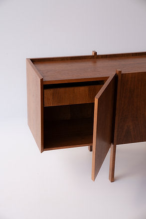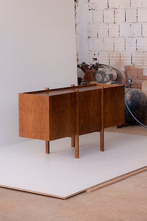 Floor buffet with a solid wood structure and MDF body covered with wood veneer.