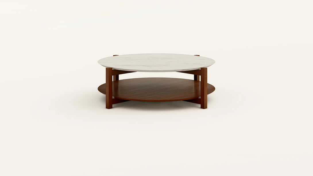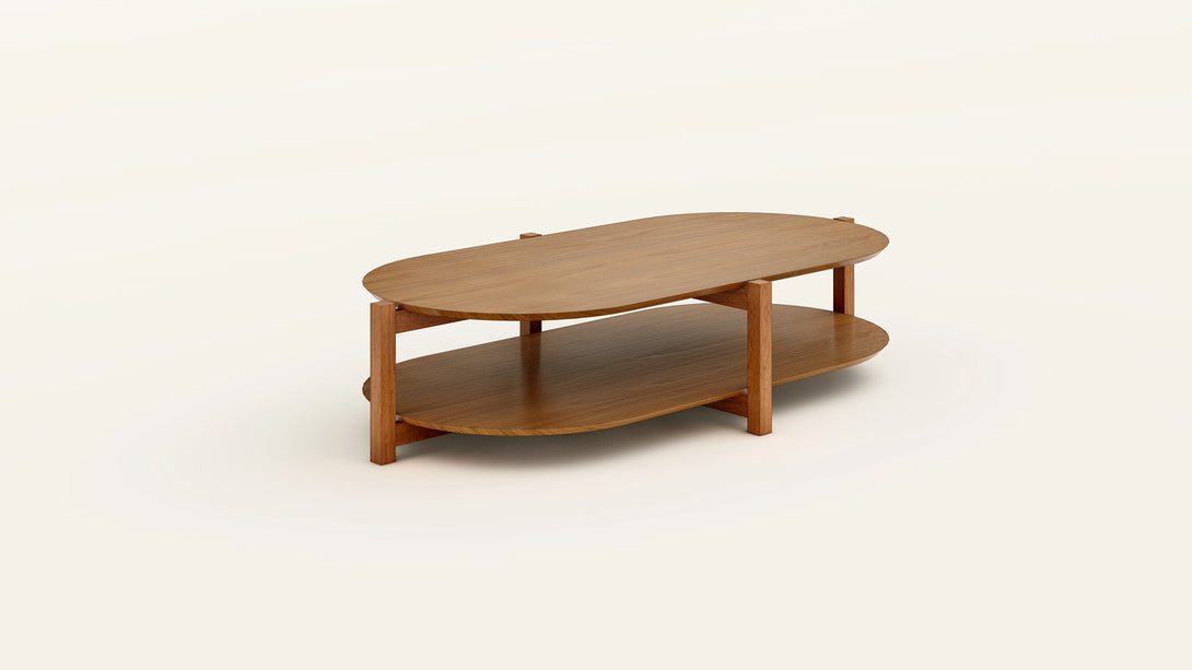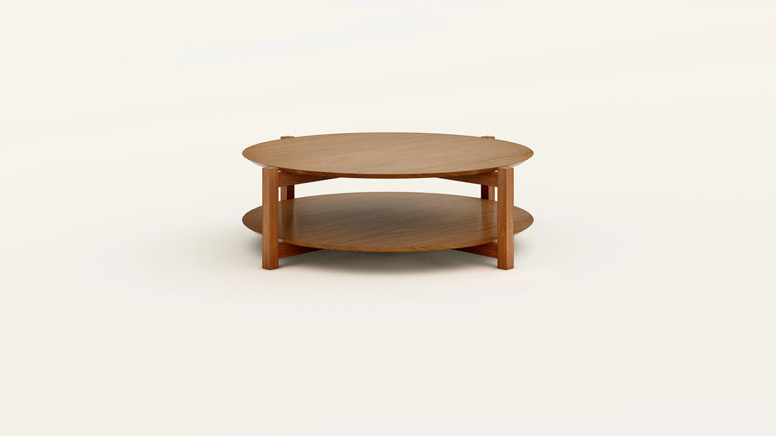 Coffee Table with a Solid Wood Structure + MDF Tops Veneered with Wood Laminate.