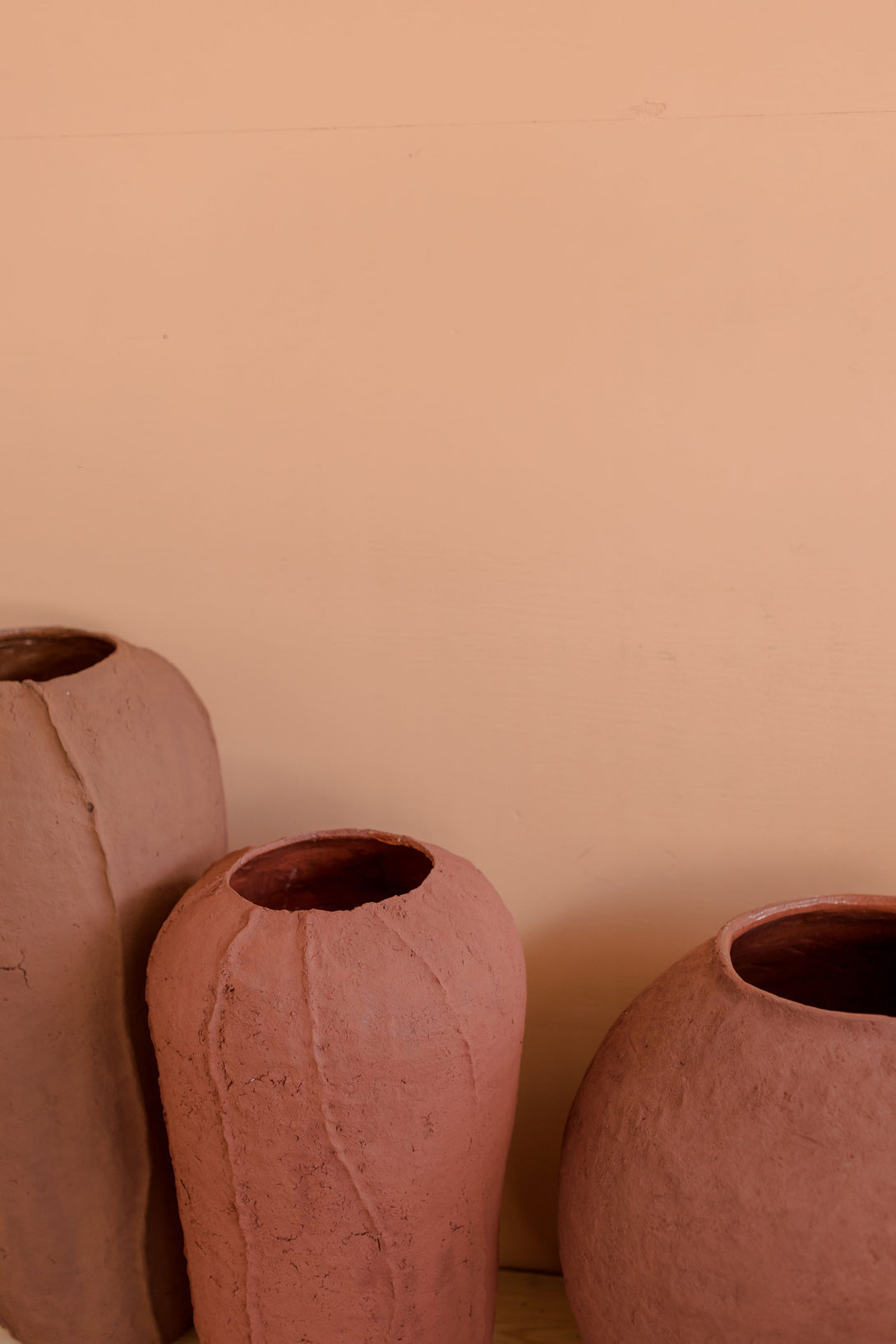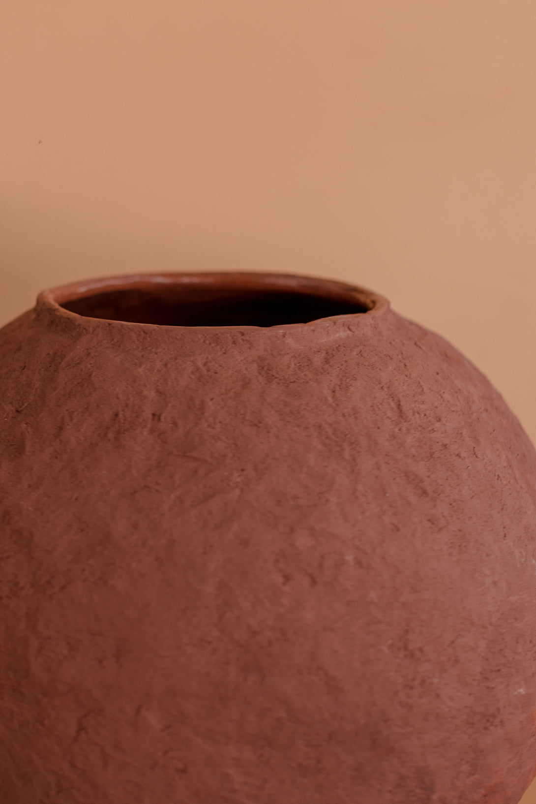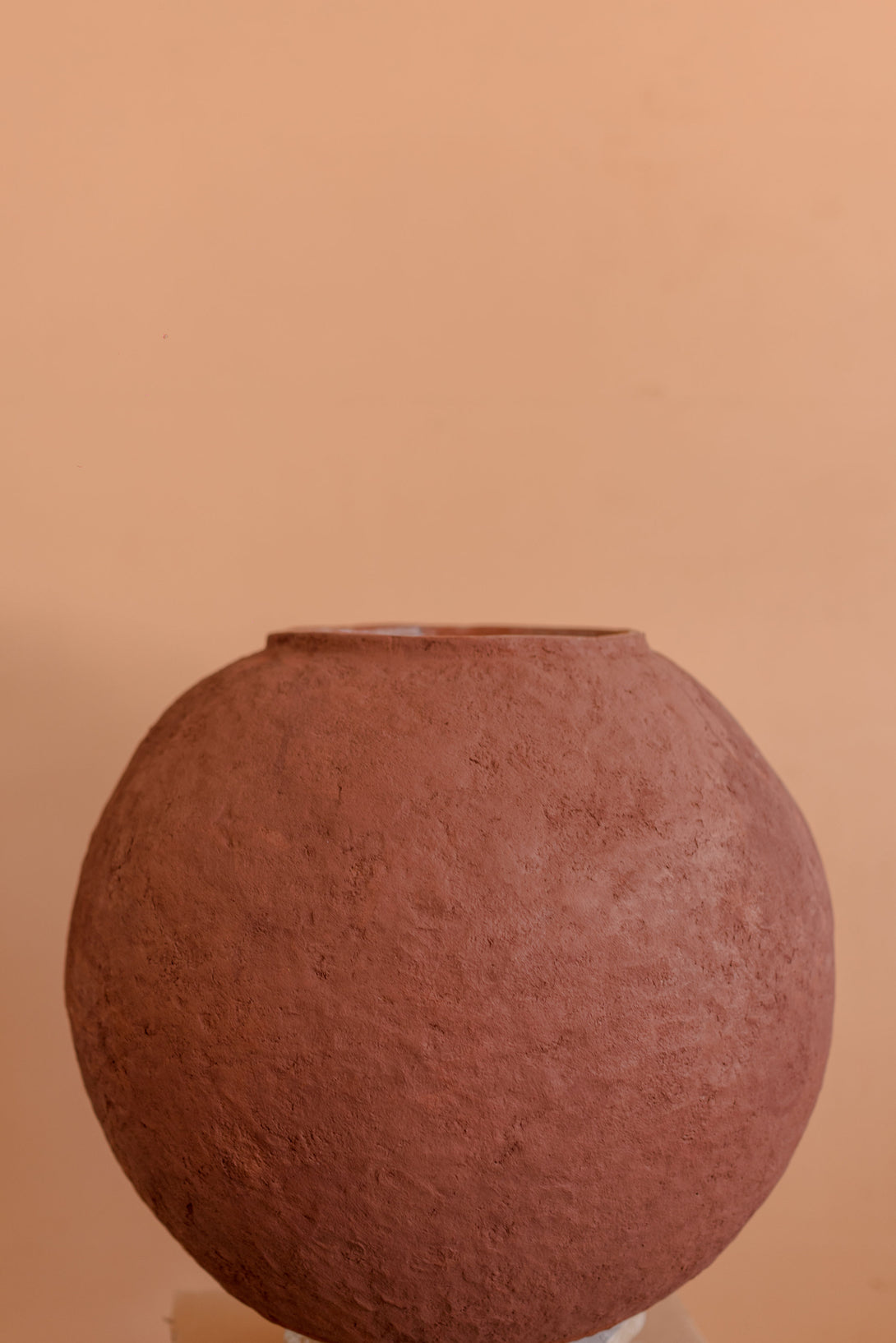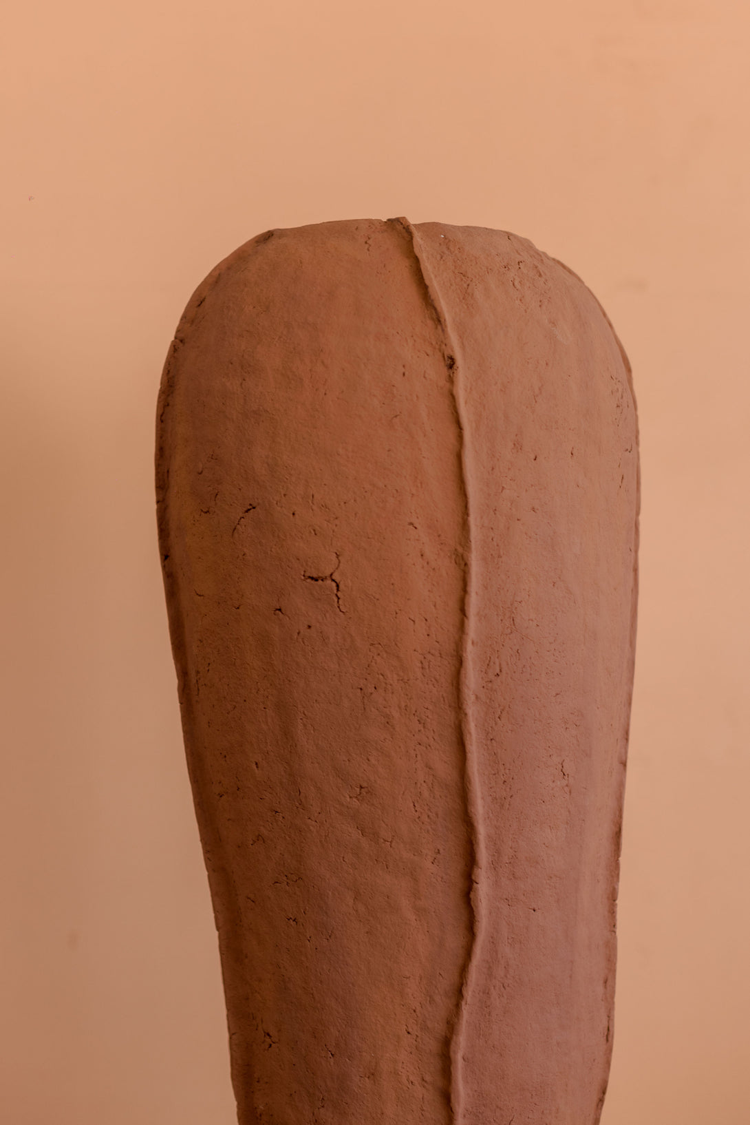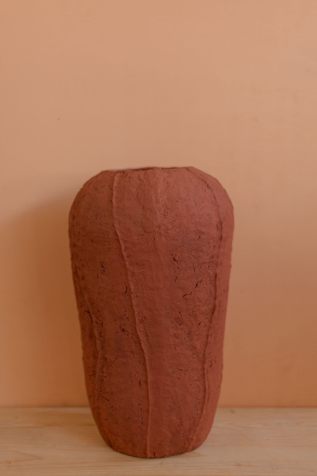 The Tlalli Vase is made of recycled paper, pigmented with natural earth-derived pigments, and has a waterproof resin interior. It is available in three sizes, combining sustainability, modern design, and uniqueness in each piece.