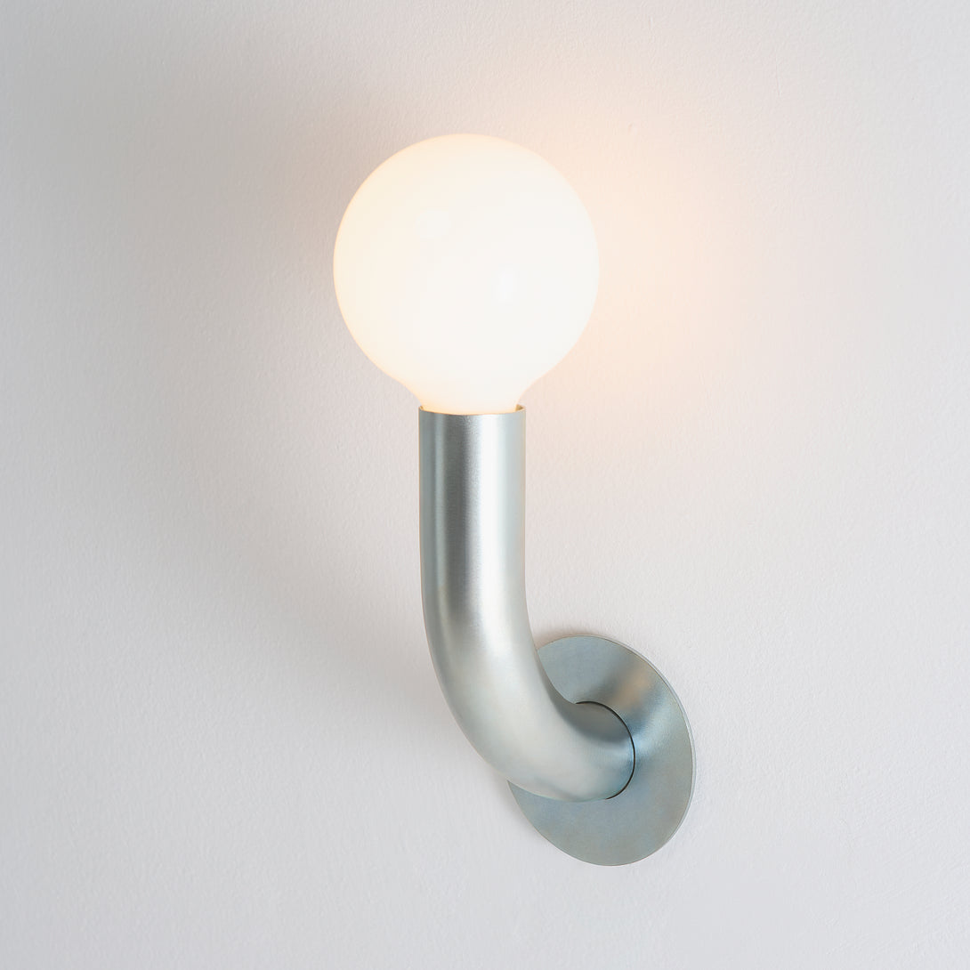 The Zinc Wall Light Curva from Cultivado em Casa is a sconce that combines industrial style with an organic design. Inspired by the 180⁰ curves found in steel objects, this piece conveys softness integrated with the rawness of the material. With a white and yellow zinc finish, this sconce further reinforces the industrial character of the element.
