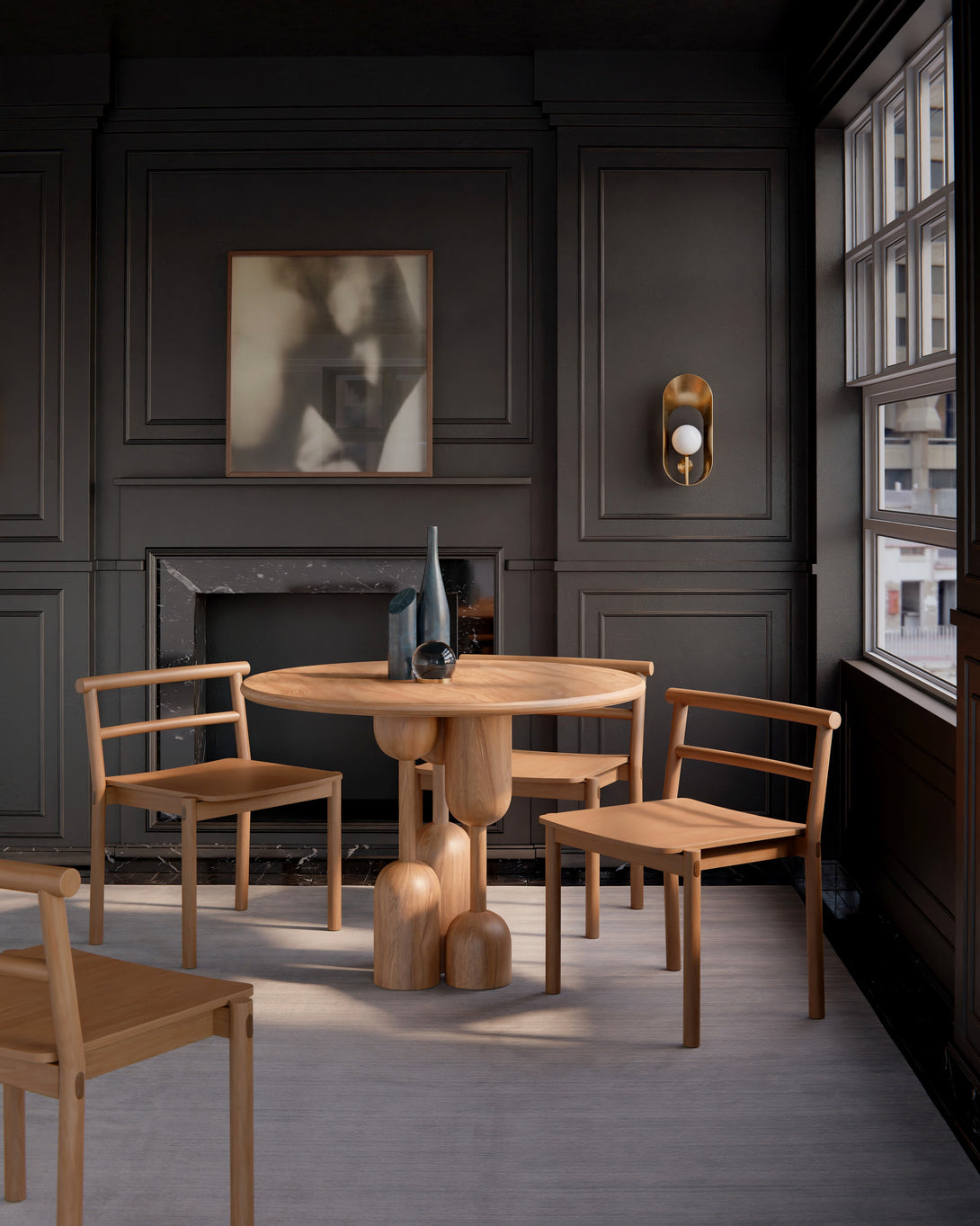 Uma peça de mobiliário deslumbrante e única feita de madeira maciça de alta qualidade. Inspirada na árvore Baobá, conhecida por armazenar água para sobreviver a longos períodos de seca, esta mesa ostenta um caráter orgânico e natural. Sua base central é composta por três volumes que fornecem estabilidade e movimento, resultando em um design atraente e funcional.