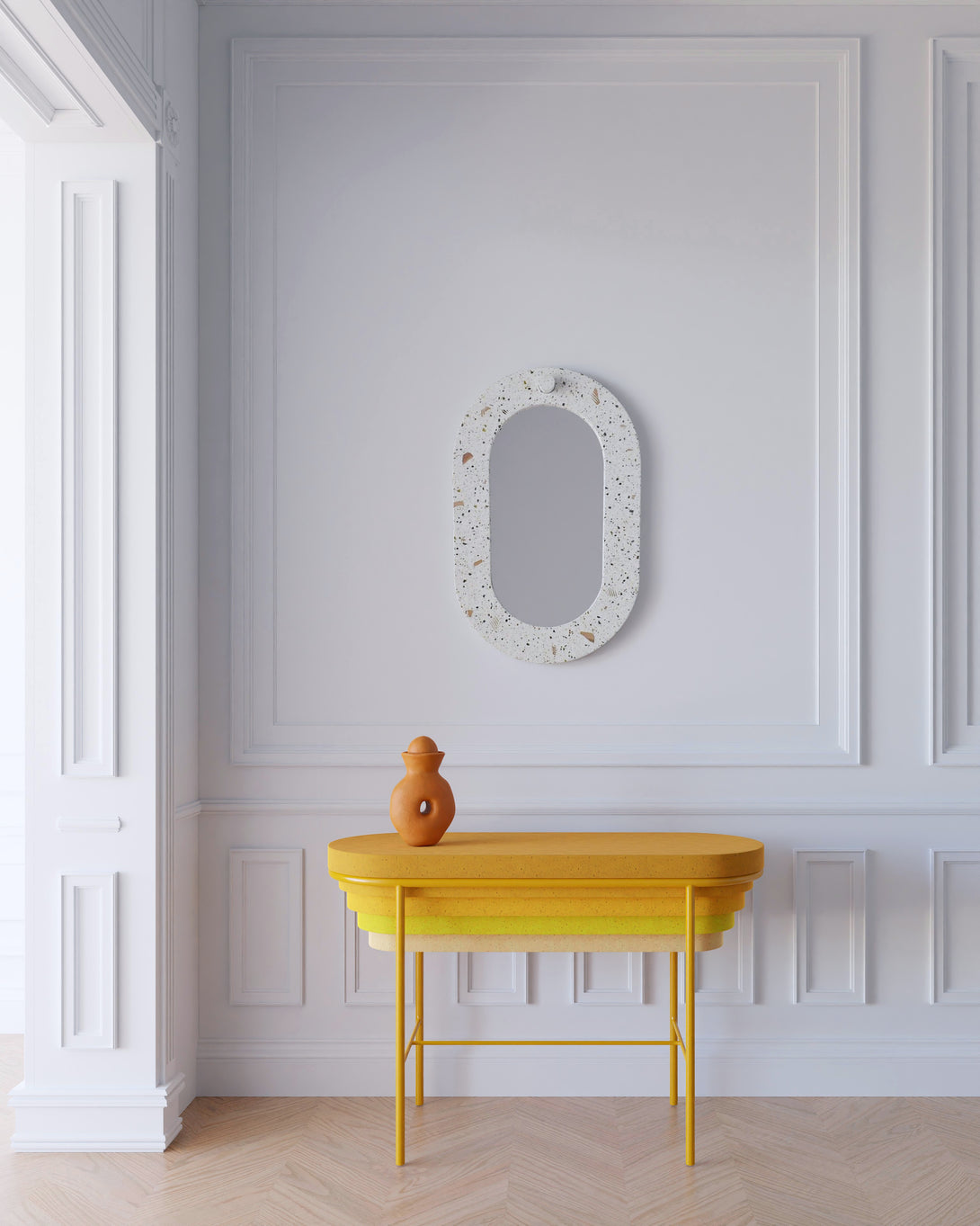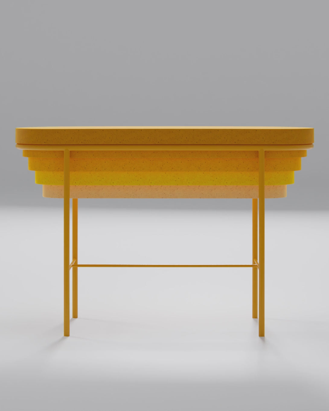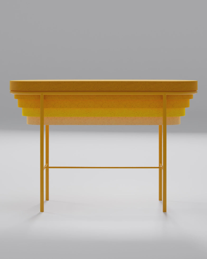 Apresentando o Aparador D33, uma peça de mobiliário moderna que busca chamar atenção para um material frequentemente negligenciado: espuma.
