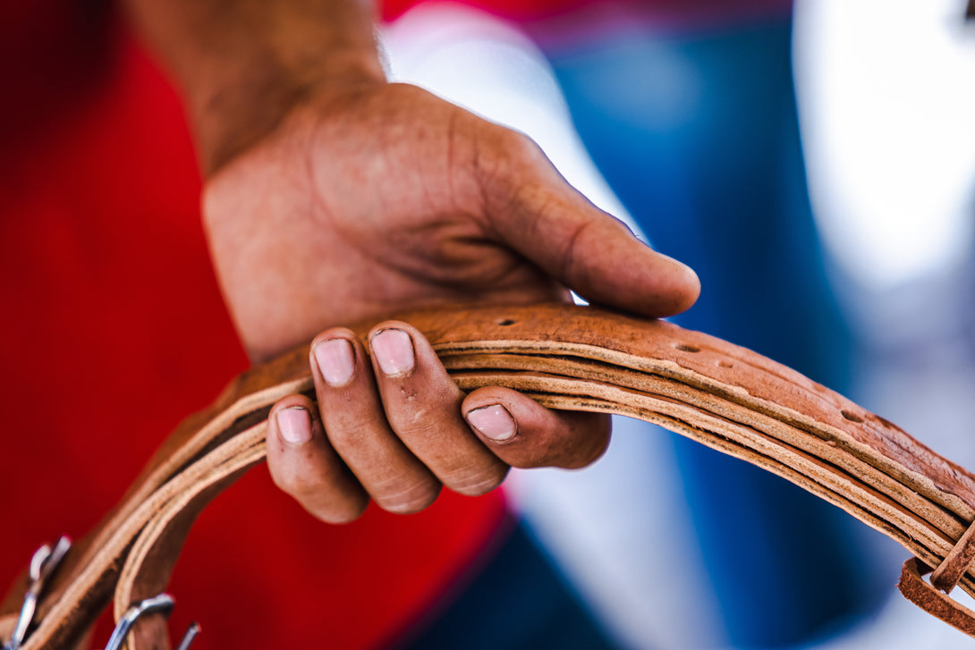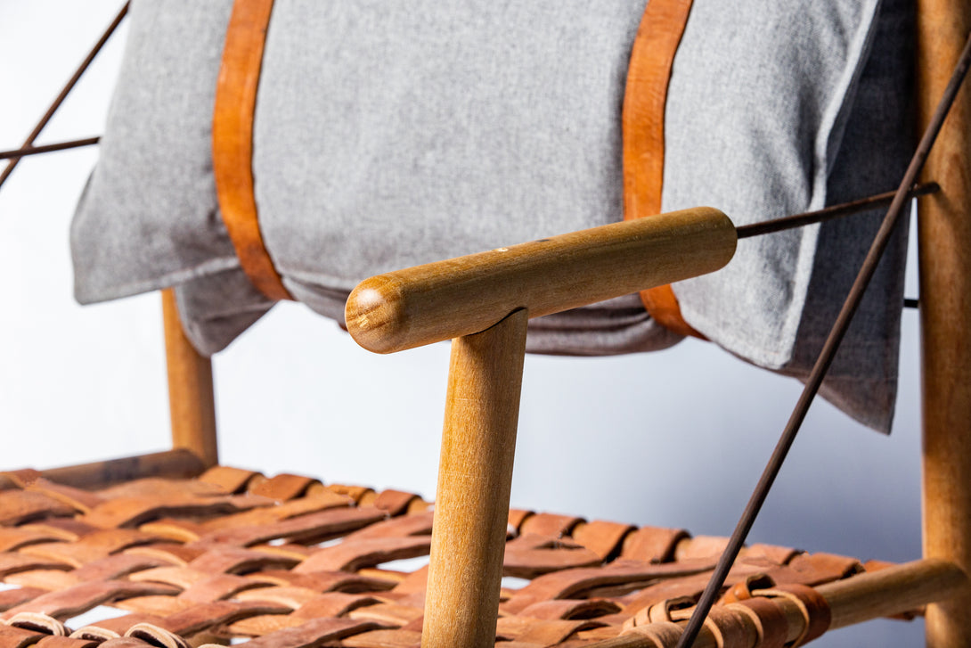 A Poltrona Arreio é uma peça única, confeccionada com peças de couro de Alagoas. Sua estrutura, feita com arreios de cavalo, garante resistência inigualável. O uso da madeira Cumaru na base aumenta a robustez. Hastes de aço meticulosamente integradas garantem estabilidade.