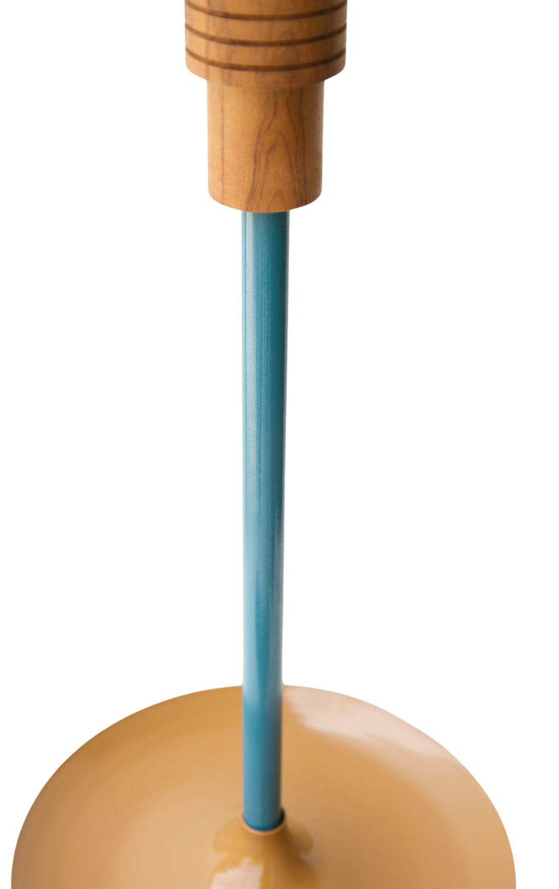Madeira maciça com acabamento em verniz fosco. A base é em aço carbono com pintura eletrostática e a bandeja coletora em alumínio com pintura eletrostática ou madeira.