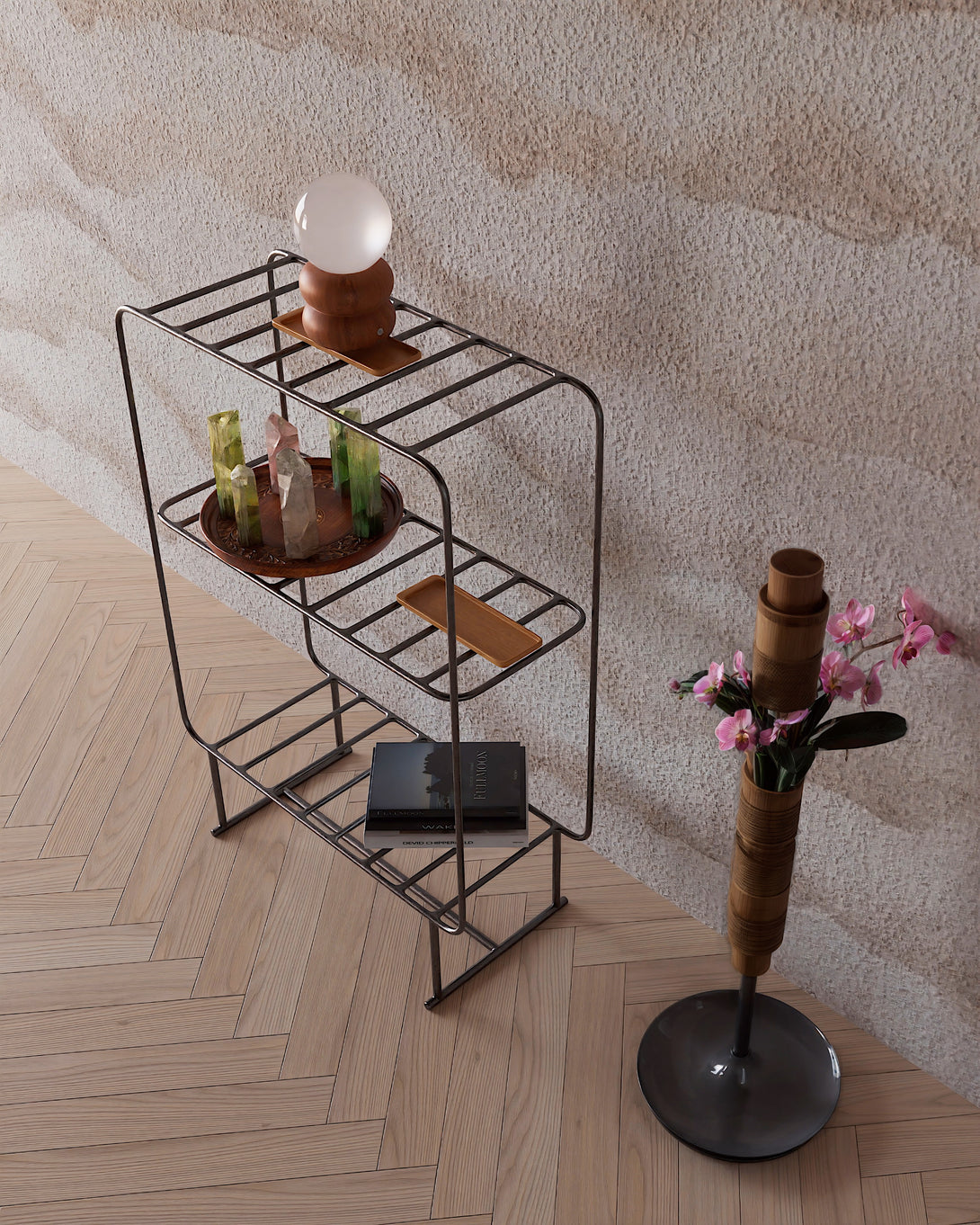 O Carboneto 30 é fabricado em ripado de madeira Imbuia com acabamento em verniz fosco. Sua base metálica é feita de aço carbono com pintura eletrostática, e a bandeja coletora de água é feita de alumínio, também com pintura eletrostática.