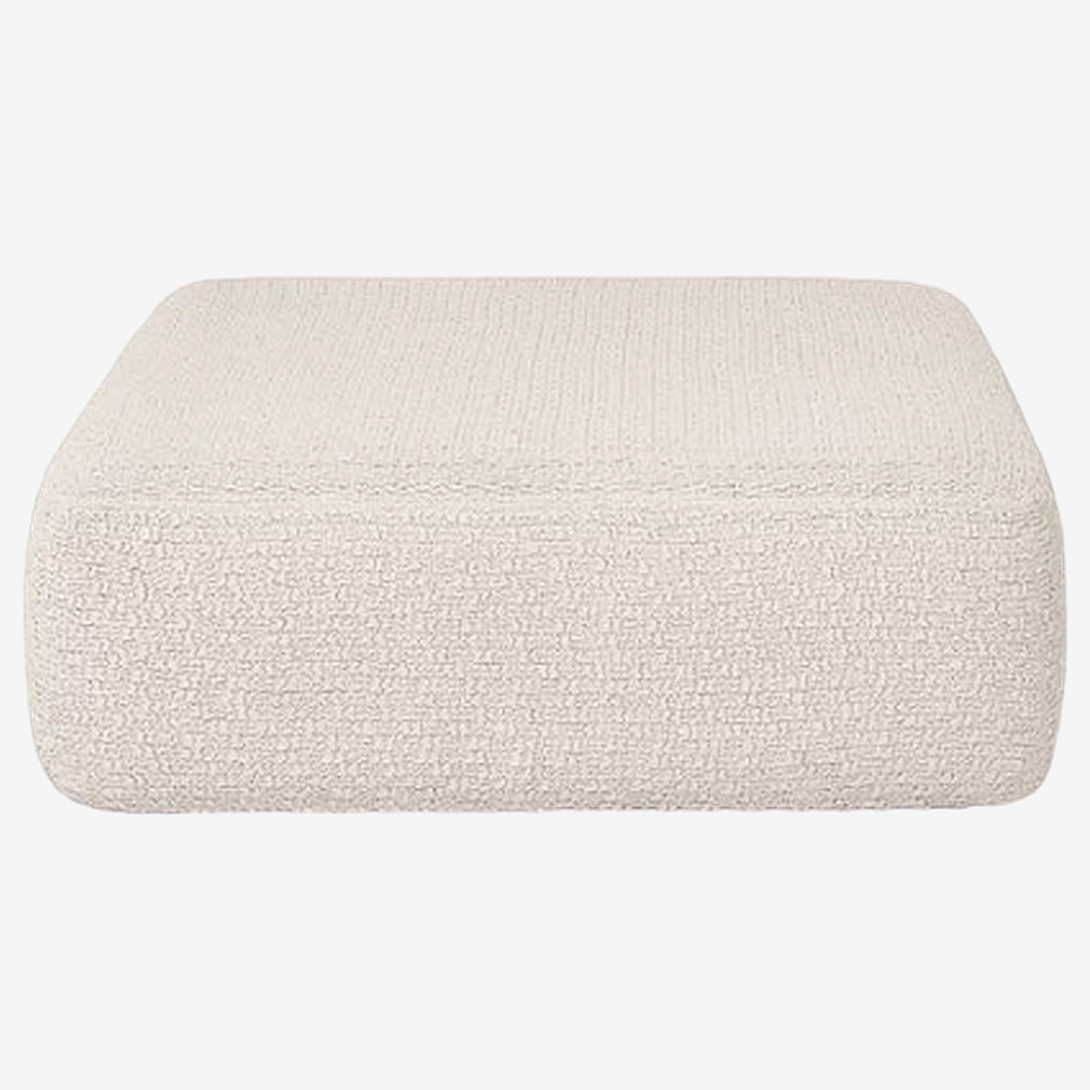 Pufe estofado com estrutura de madeira, tiras elásticas e espuma. Revestimento exclusivo WE-KNIT (100% PET reciclado).