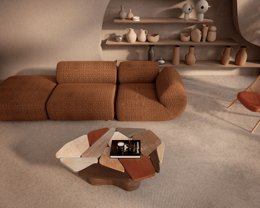 A série Dobra foi criada a partir de um gesto natural: dobrar um material macio. Para cada peça, é aplicada uma força que respeita a resistência e a densidade da espuma. É como se uma grande almofada se curvasse e parasse no tempo. O revestimento exclusivo WE-KNIT - malha 3D feita de PET reciclado - combina uma experiência tátil, com alta resistência ao desgaste e sustentabilidade.