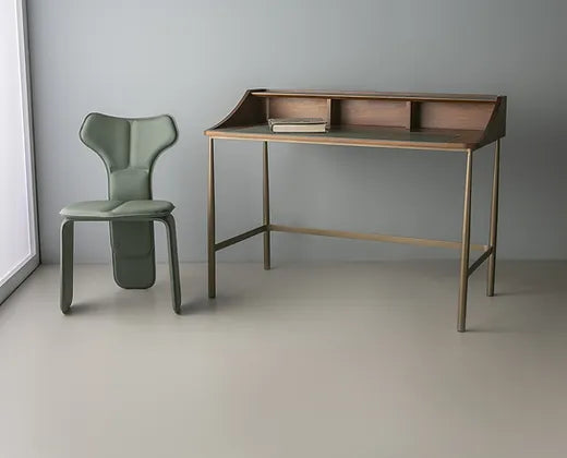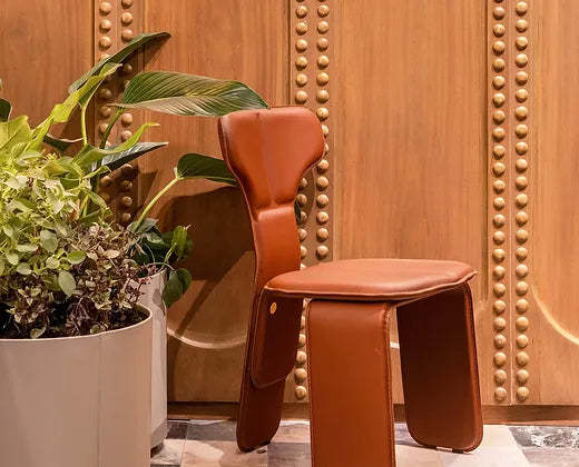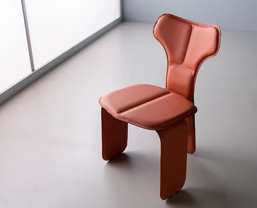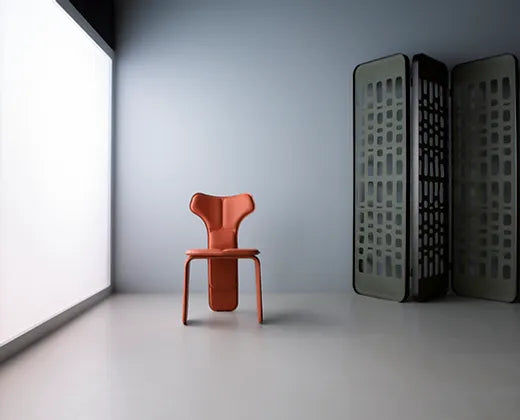 Inspirada na anatomia humana, a cadeira Fly de Tiago Curioni apresenta estrutura metálica e almofadas que lembram os músculos do corpo humano. Totalmente revestida em couro, a cadeira é composta por três partes independentes que são produzidas separadamente e depois unidas, resultando em uma cadeira única de três pernas.