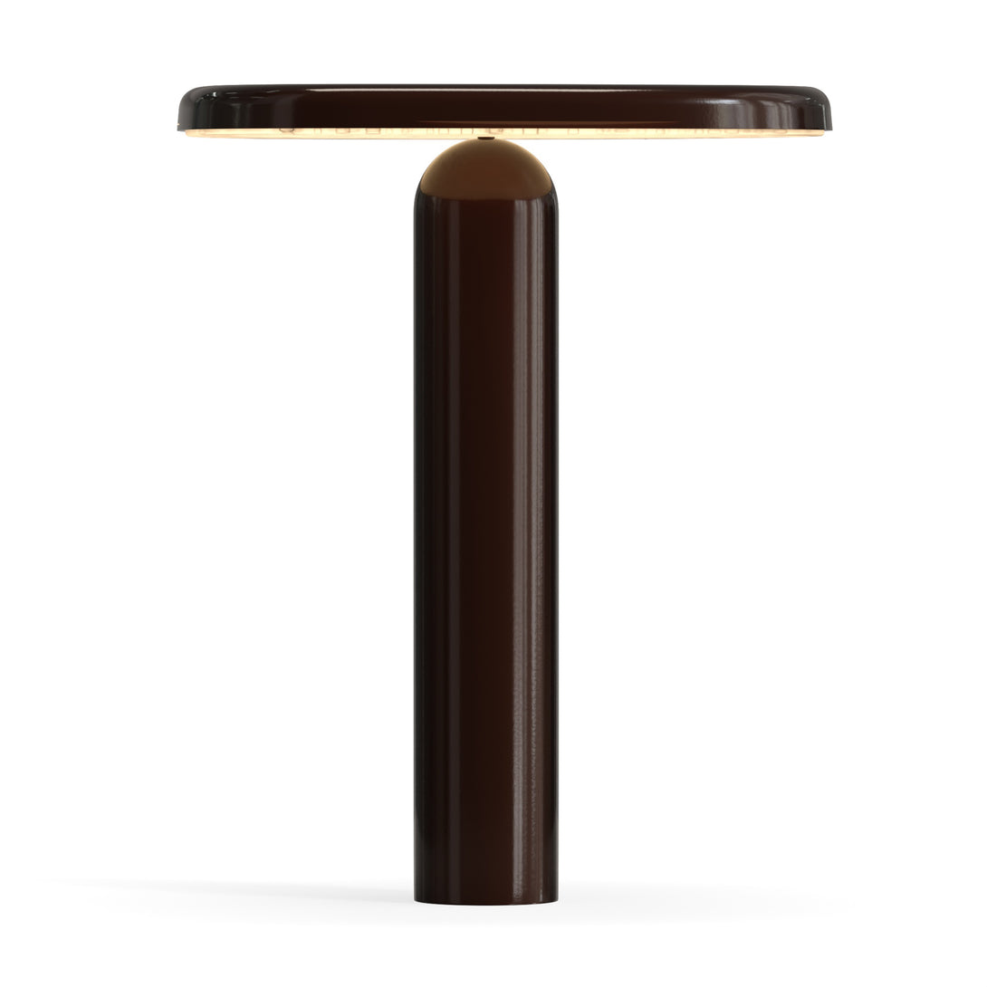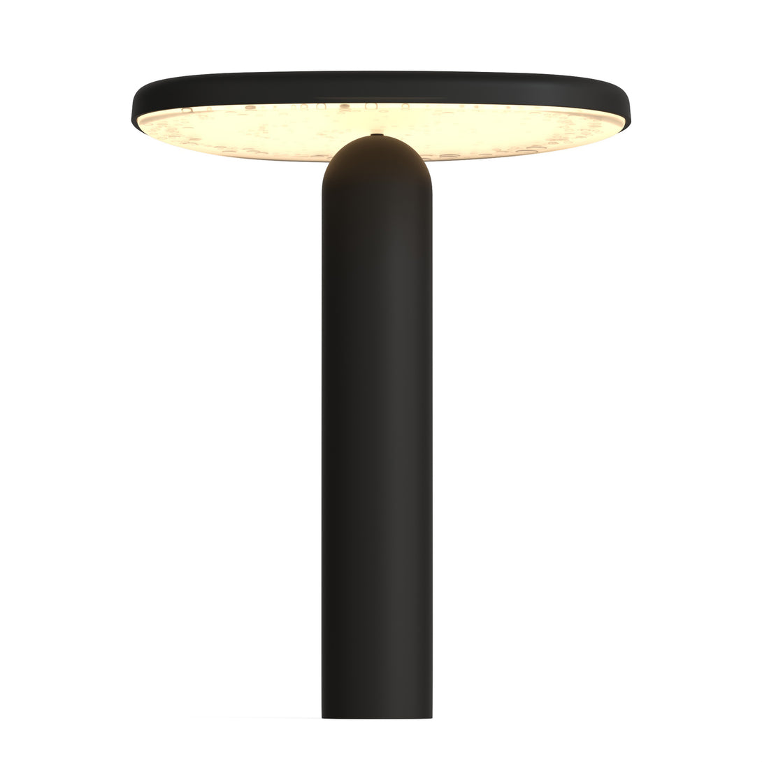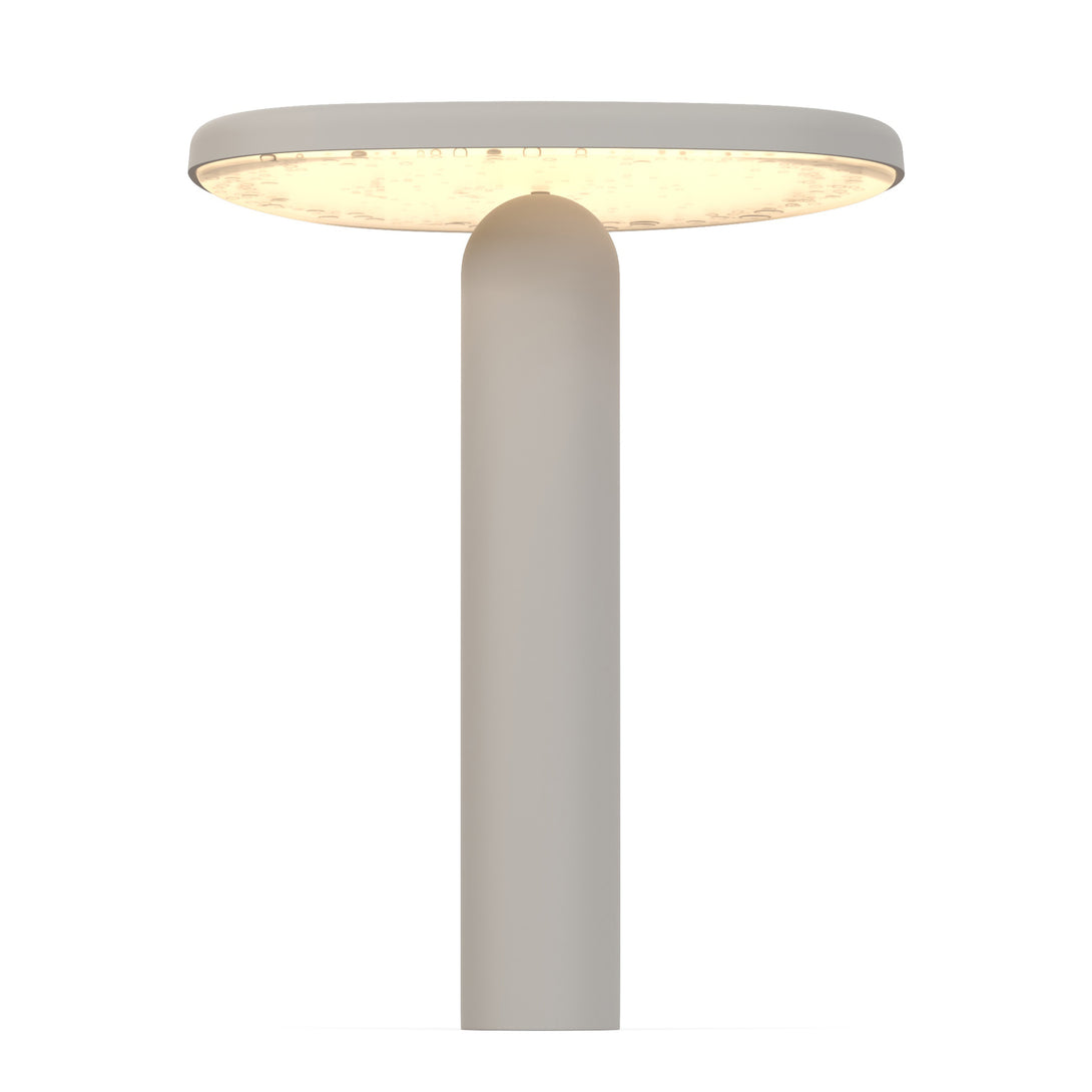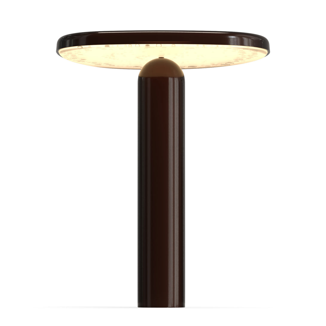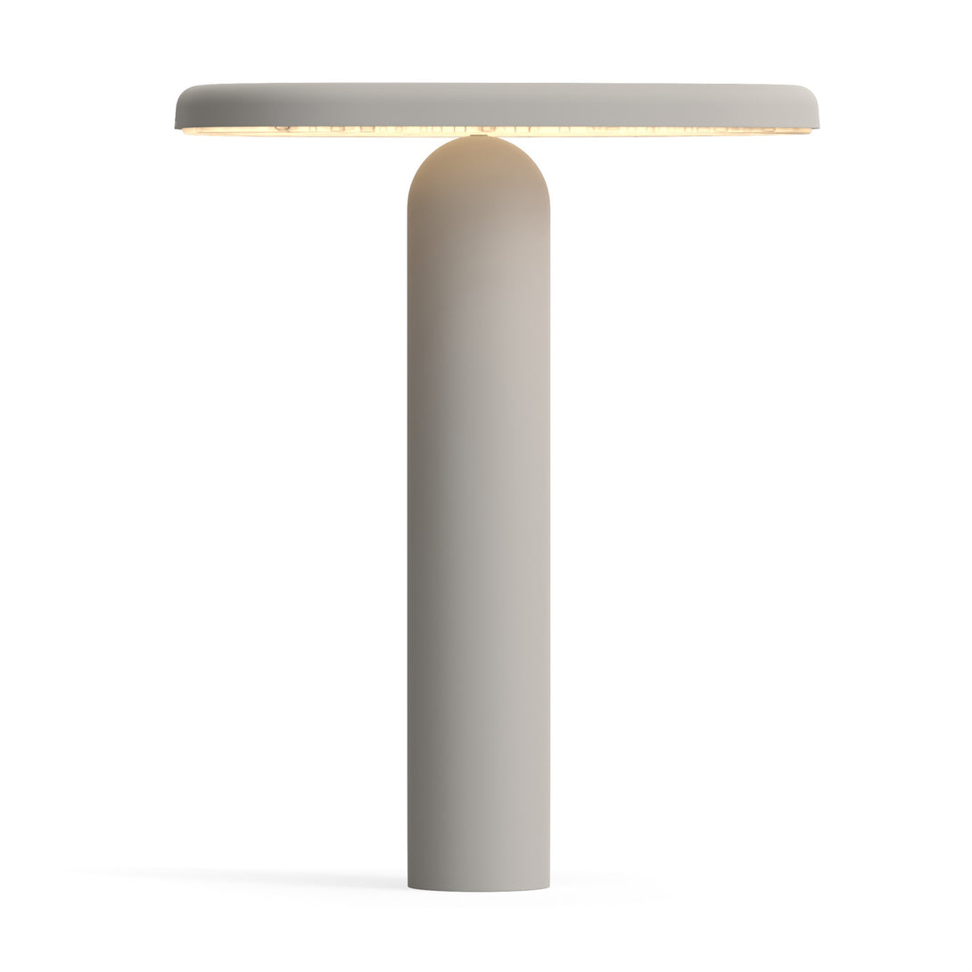 A luminária oferece iluminação difusa e possui corpo feito em alumínio, disponível em pintura líquida fosca com verniz soft-touch para as versões Off White, Off Black e Cement, ou verniz alto brilho para a versão Café. Inclui um difusor de vidro transparente, feito por meio de um processo de fundição artesanal. Um interruptor de botão localizado na base permite uma função de dimmer de 3 etapas, e a luminária vem com um LED integrado.
