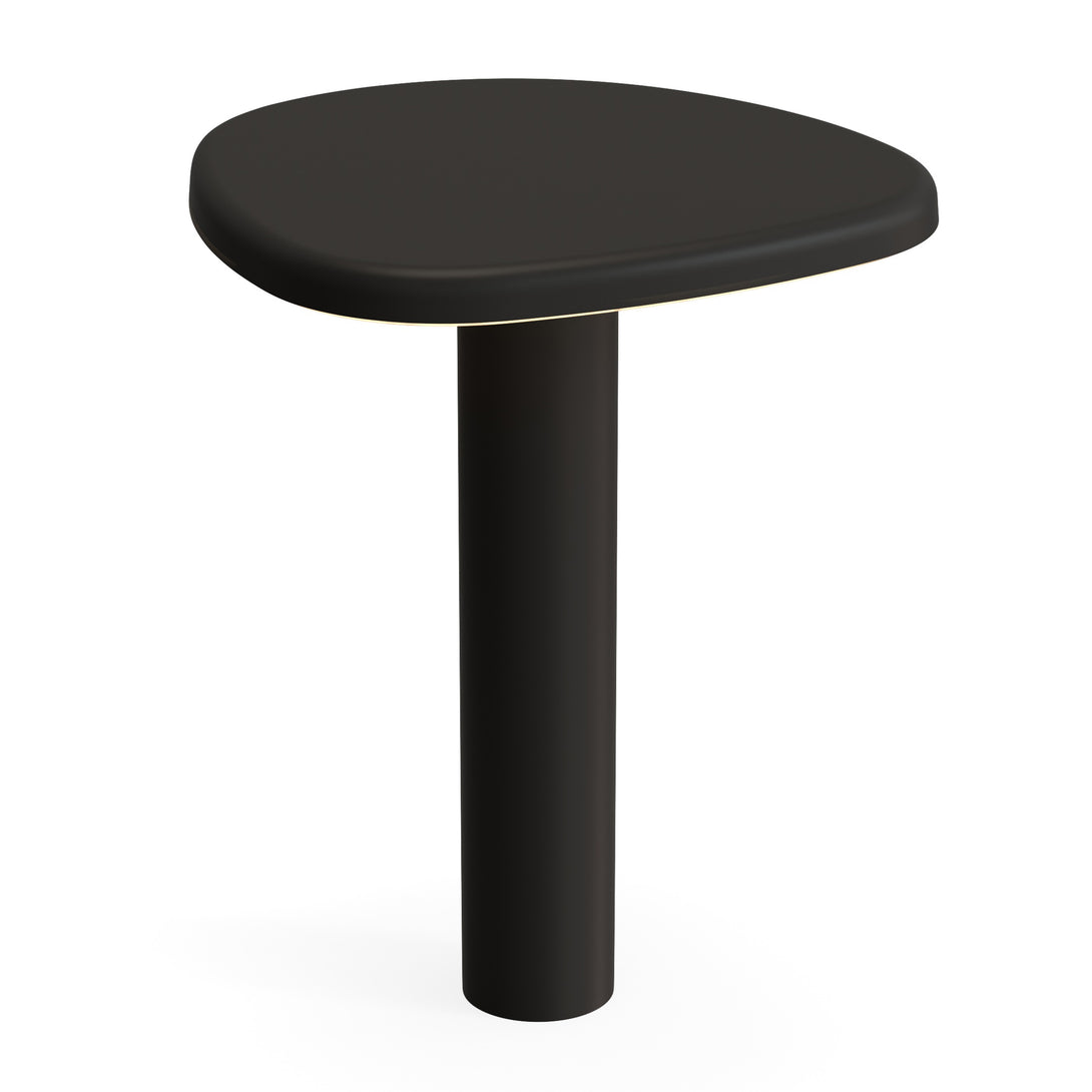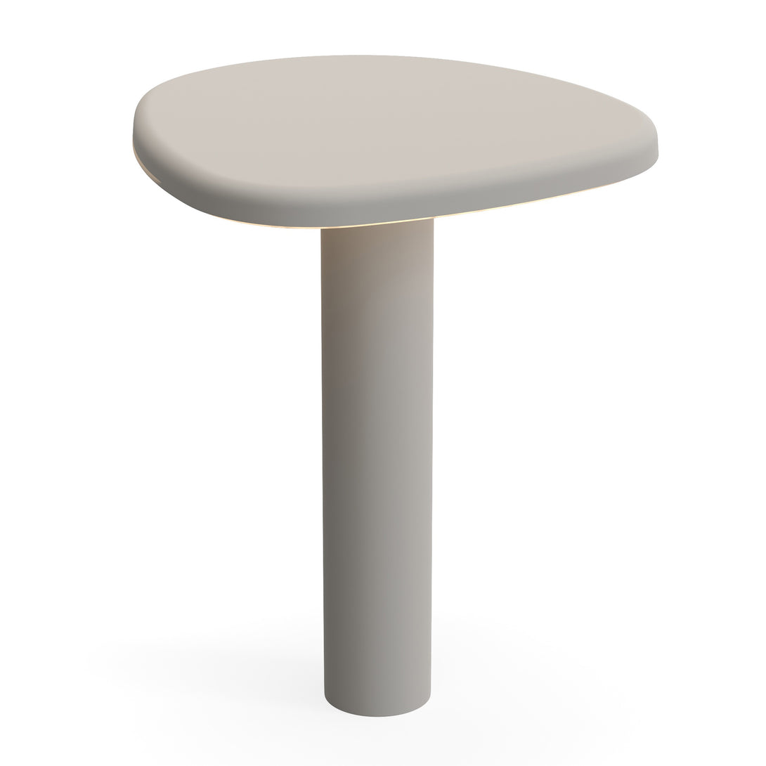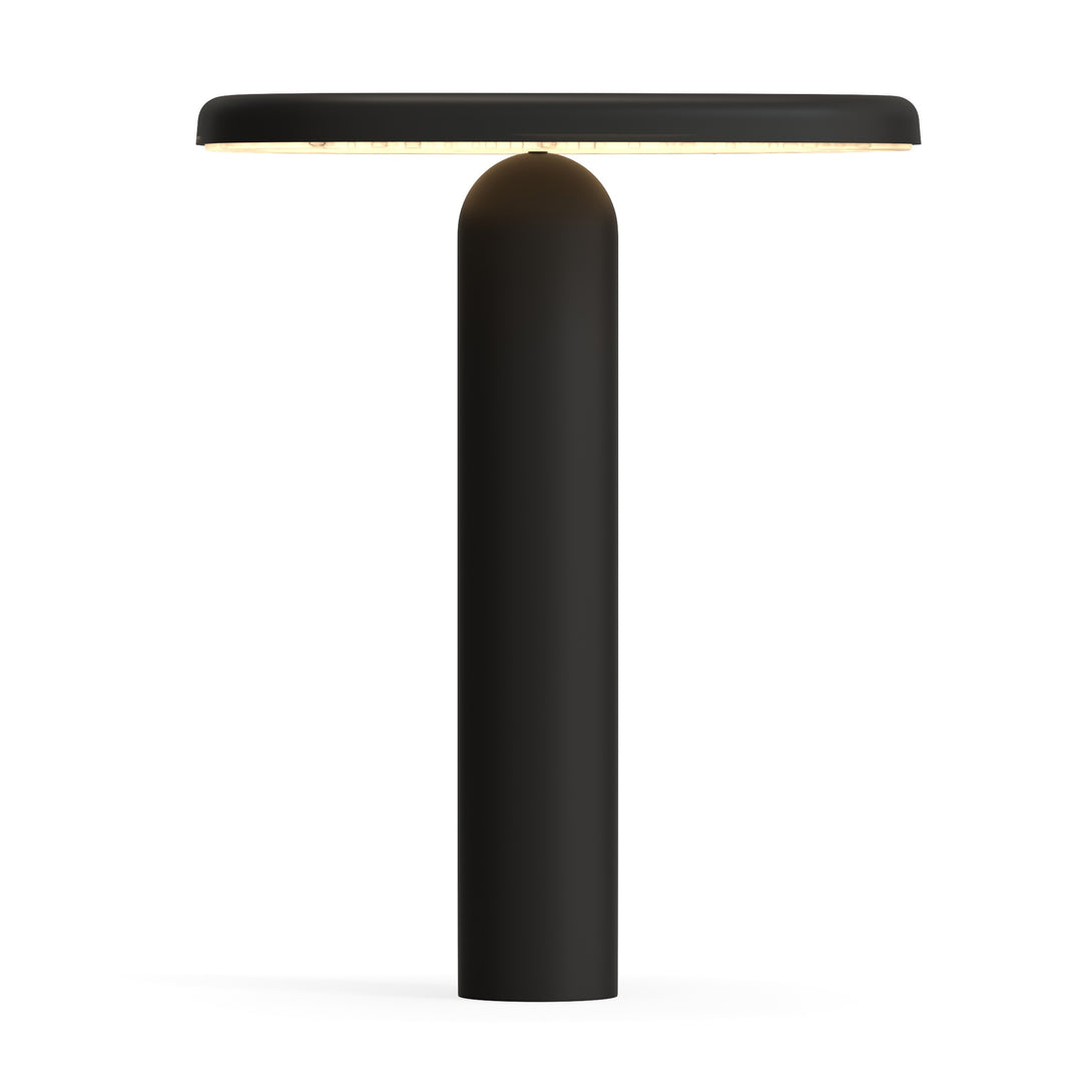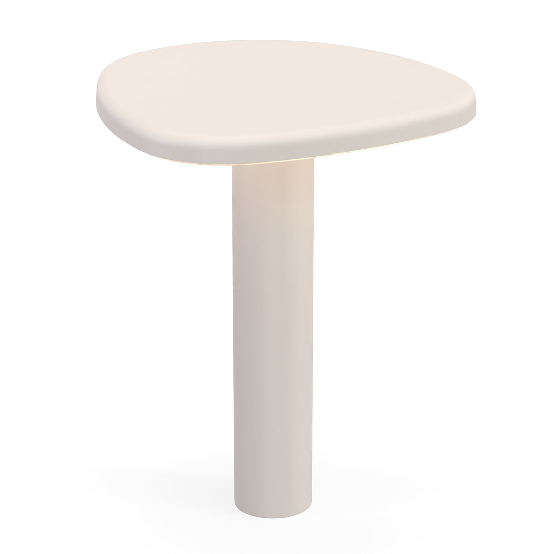 A luminária oferece iluminação difusa e possui corpo feito em alumínio, disponível em pintura líquida fosca com verniz soft-touch para as versões Off White, Off Black e Cement, ou verniz alto brilho para a versão Café. Inclui um difusor de vidro transparente, feito por meio de um processo de fundição artesanal. Um interruptor de botão localizado na base permite uma função de dimmer de 3 etapas, e a luminária vem com um LED integrado.