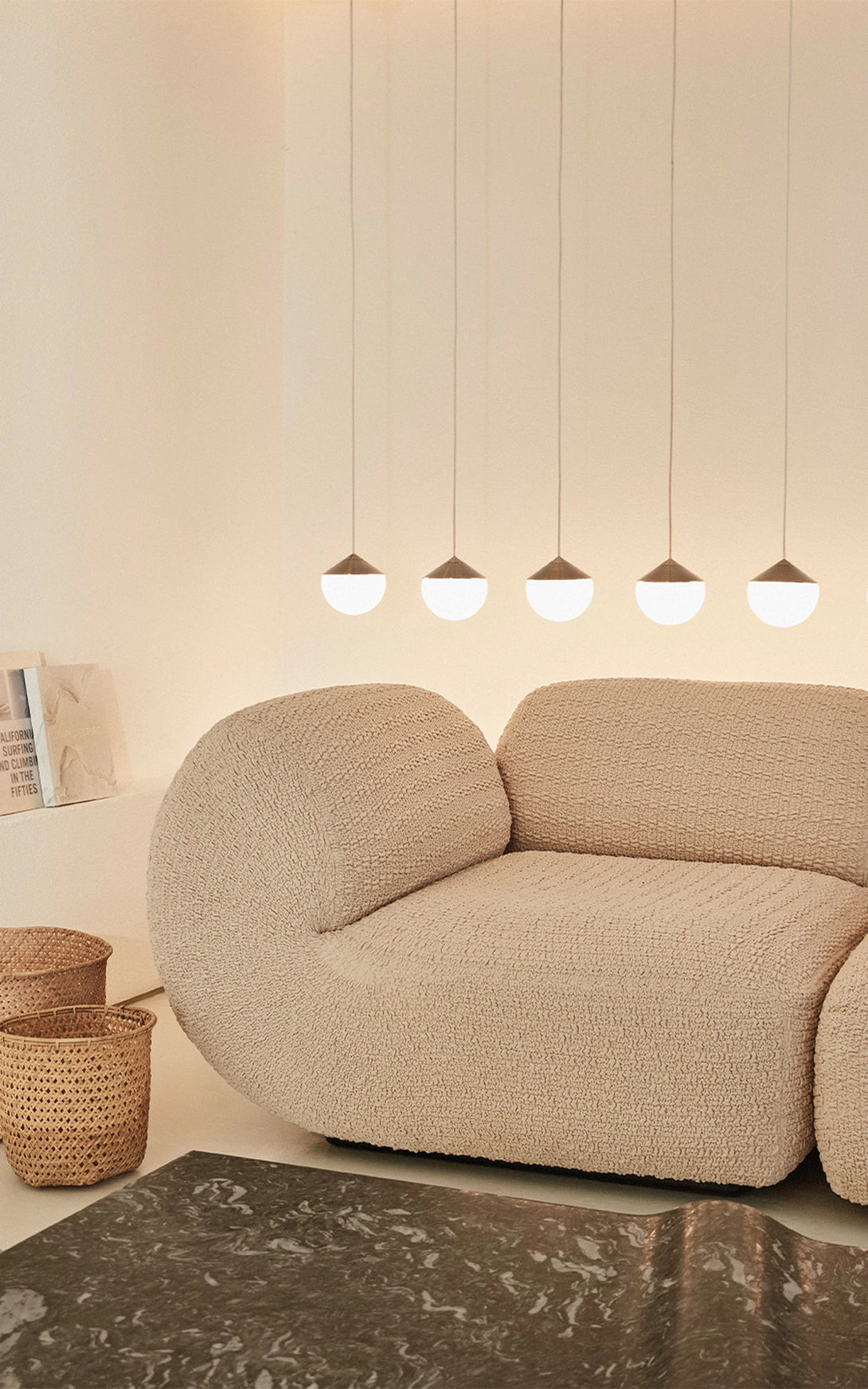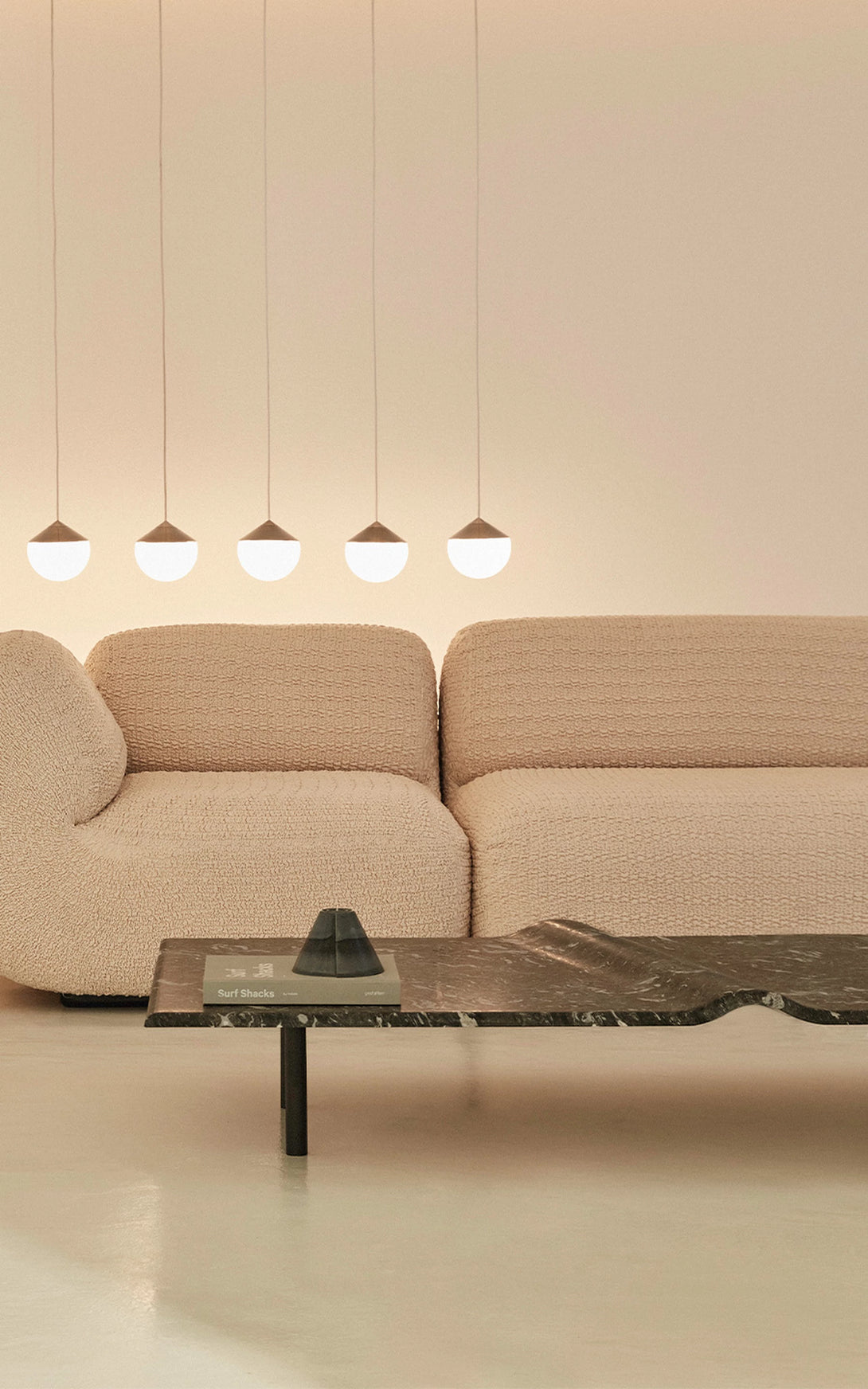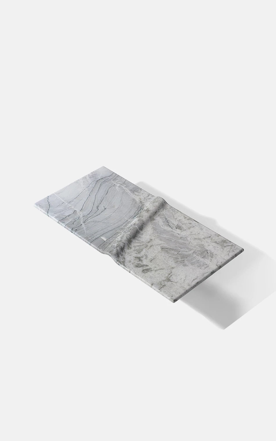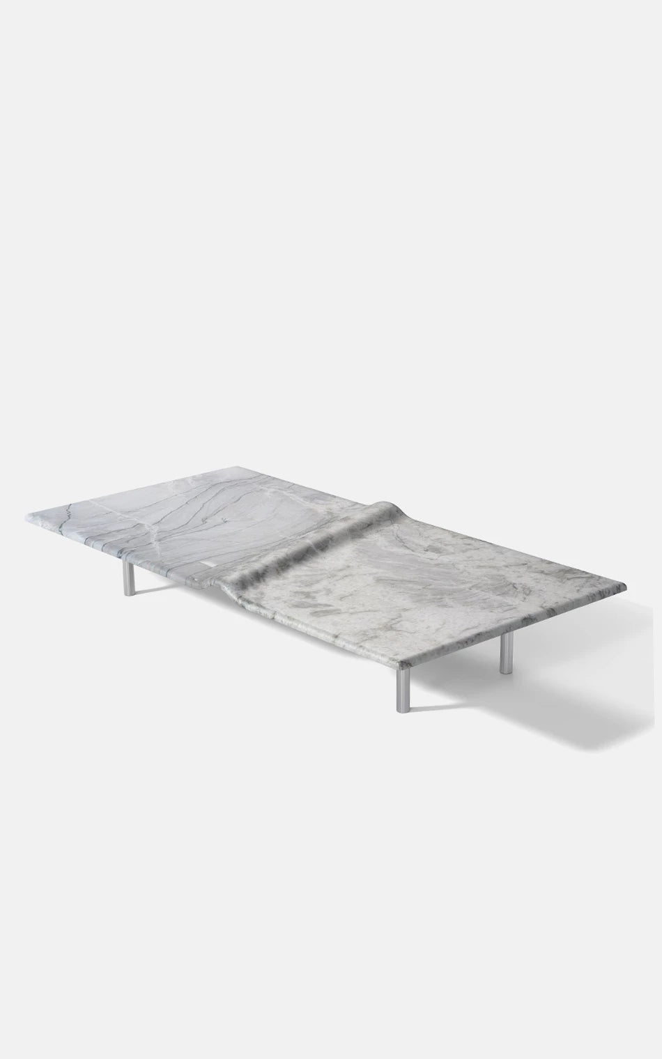 A Mesa de Centro Onda associa-se à imagem do mar. A escultura em pedra granítica cria a curva perfeita - Marcada pela amplitude do ponto de equilíbrio do repouso à crista da onda. Um movimento das águas que apresenta força e delicadeza em um bloco de pedra brasileira. A base preta dá uma sensação de profundidade, de que a matéria é densa, complexa e misteriosa, como um oceano noturno. As manchas brancas, em oposição, lembram a espuma da arrebentação, o futuro da onda: água agitada, clareza e atrito. A escolha de uma base longa e retangular contrasta com a forma orgânica ondulada, que curva e diagonaliza o centro da mesa. O móvel vira paisagem, ou melhor: fotografia de paisagem.