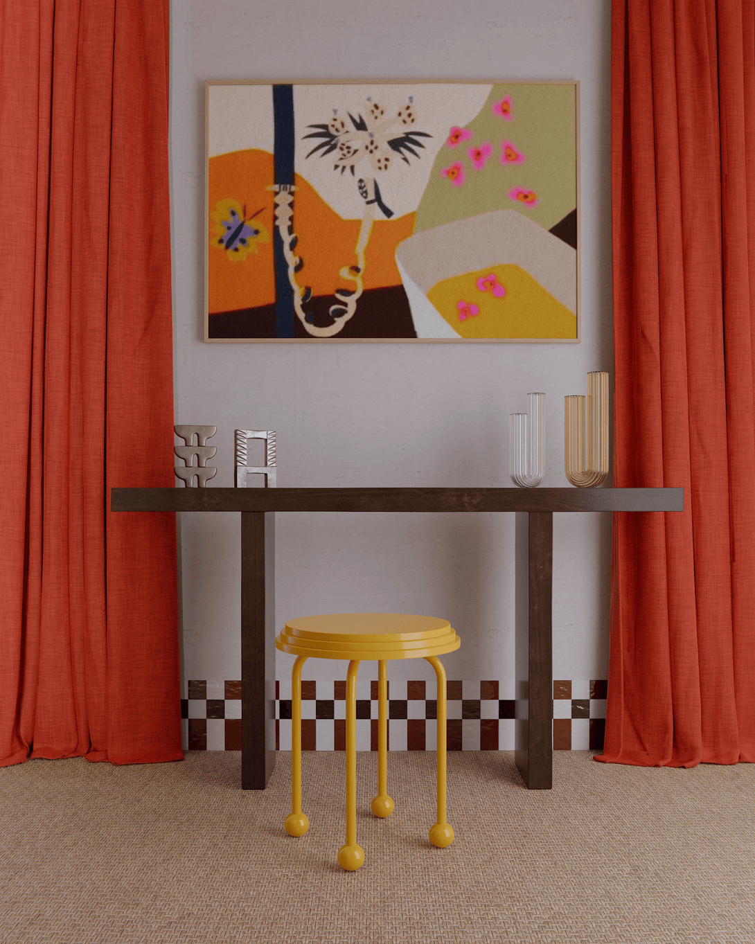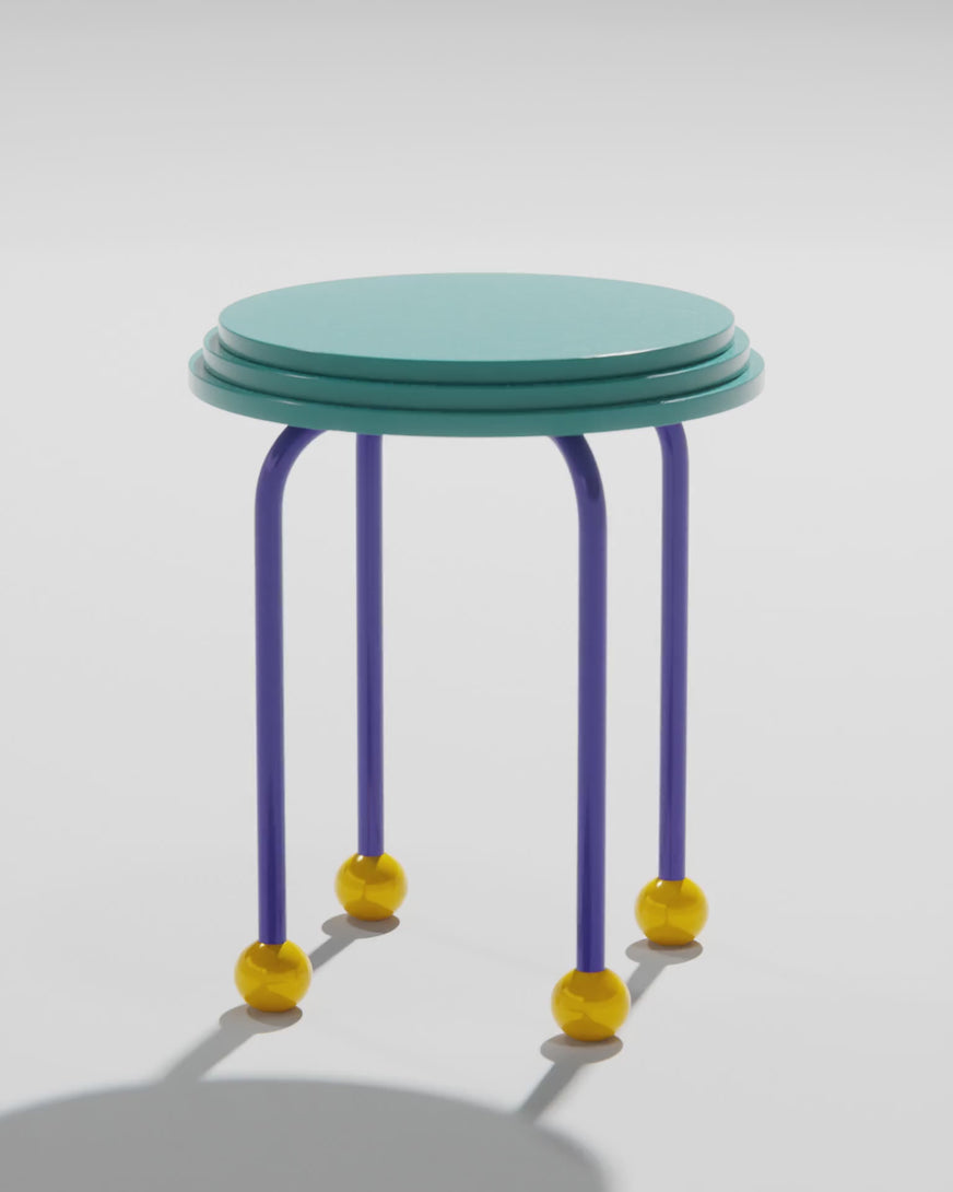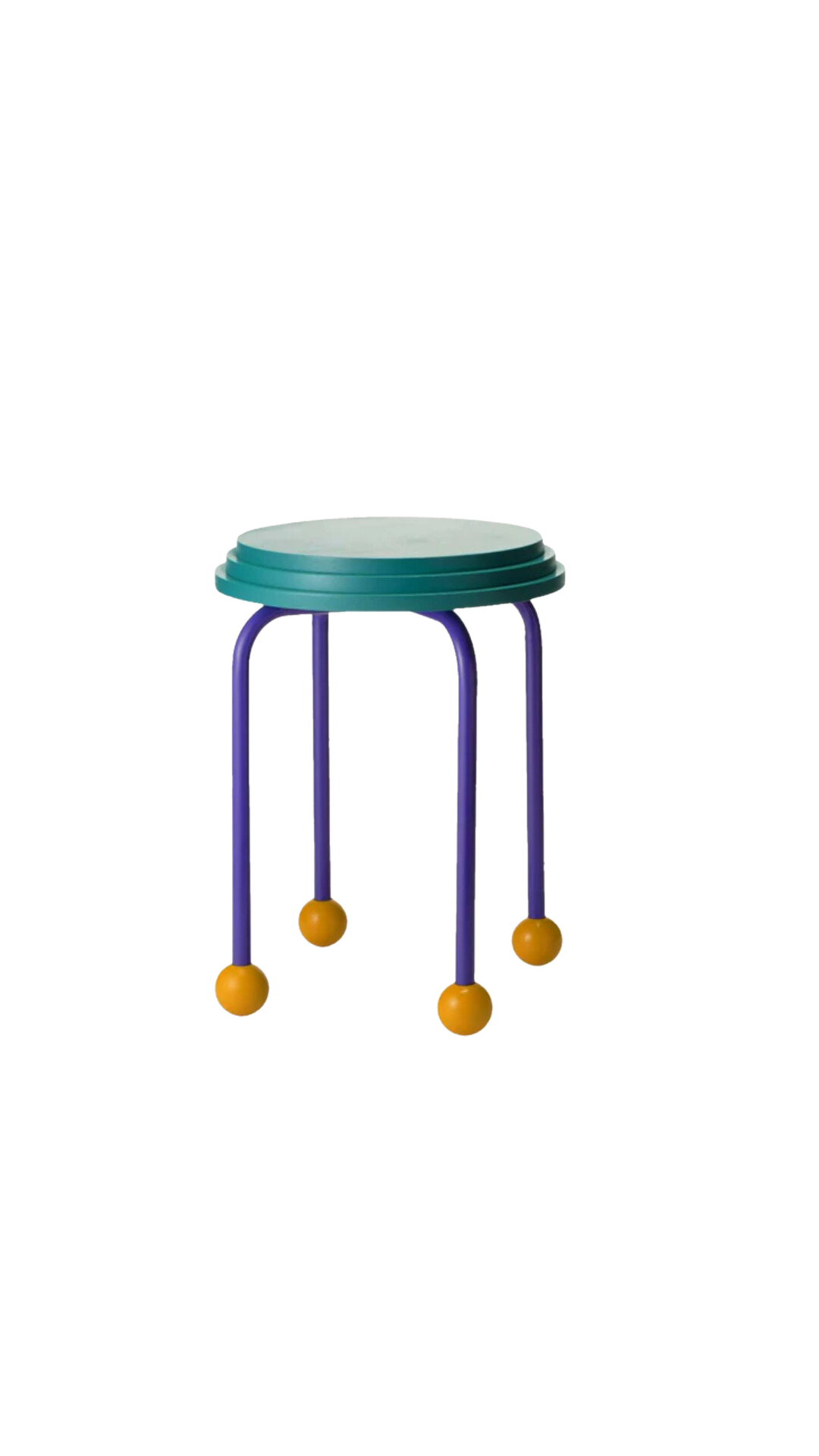 O Banco Ovni - Uma celebração visual do geometricismo e cores vibrantes que explora a relação entre objetos e o espaço ao redor. Um experimento em materiais e conceitos que percorreu diferentes práticas de design.