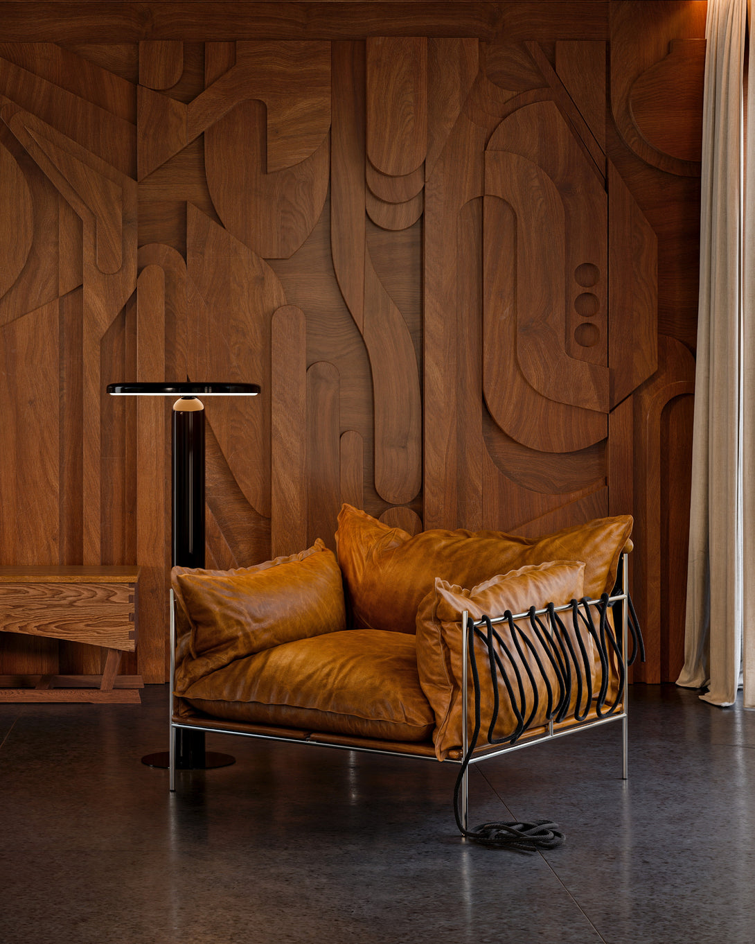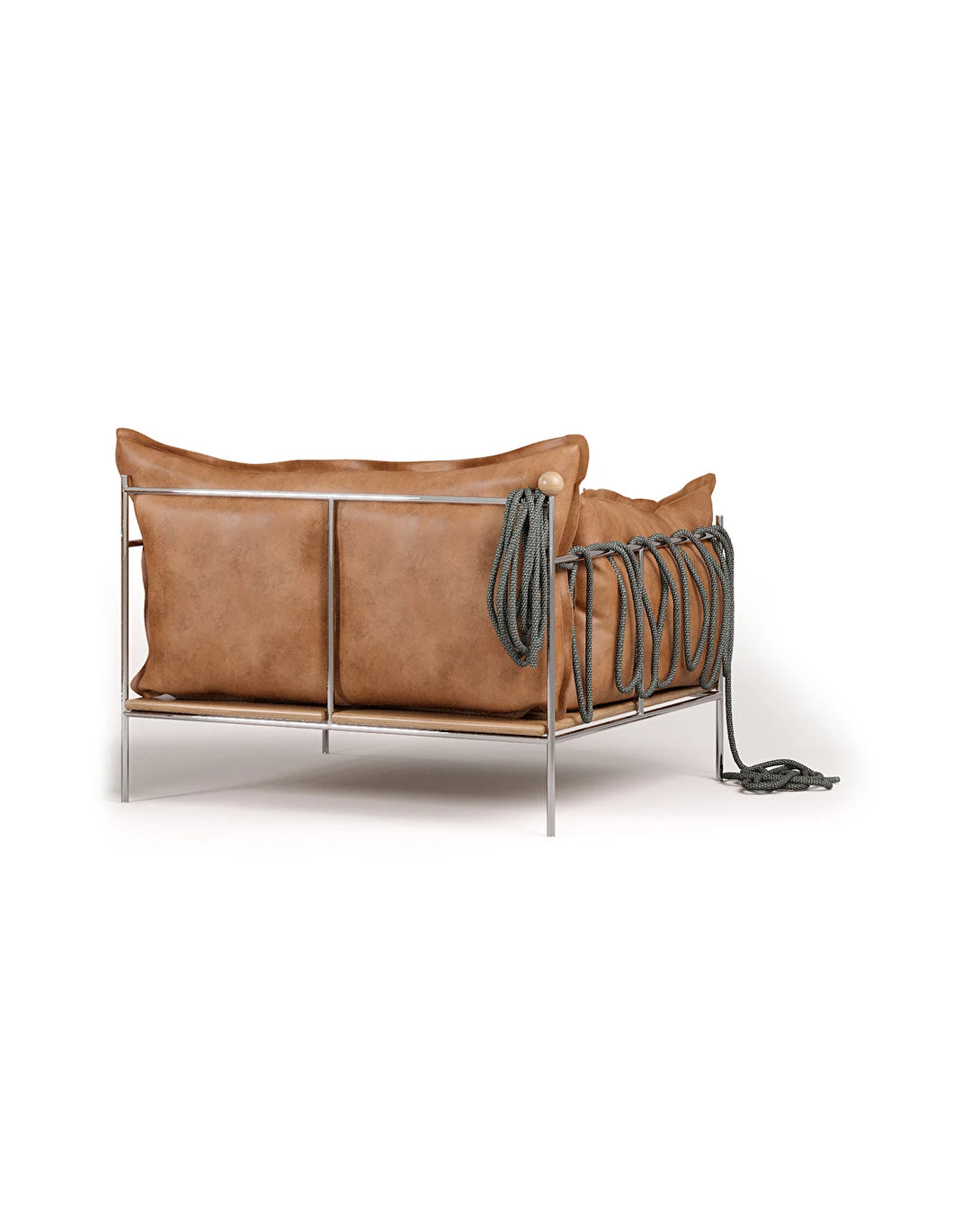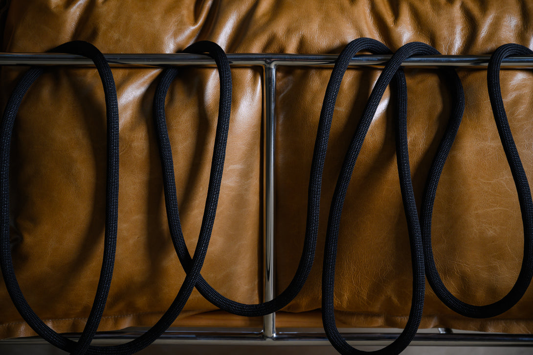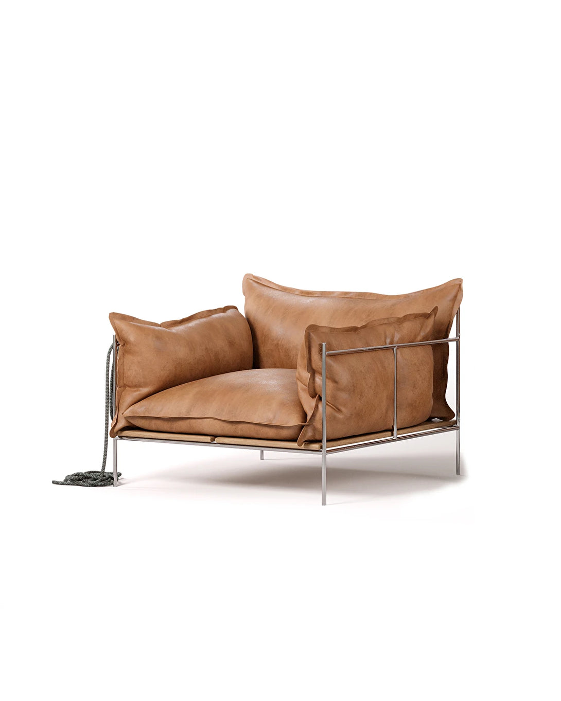 A Poltrona Job se destaca por sua estética ousada e industrial. As almofadas de couro extra grandes proporcionam uma experiência de assento luxuosa, enquanto os cordões externos que envolvem a poltrona adicionam um toque robusto e incomum. Esta poltrona é ideal para dar personalidade a interiores de estilo contemporâneo ou industrial, combinando conforto com um design único.