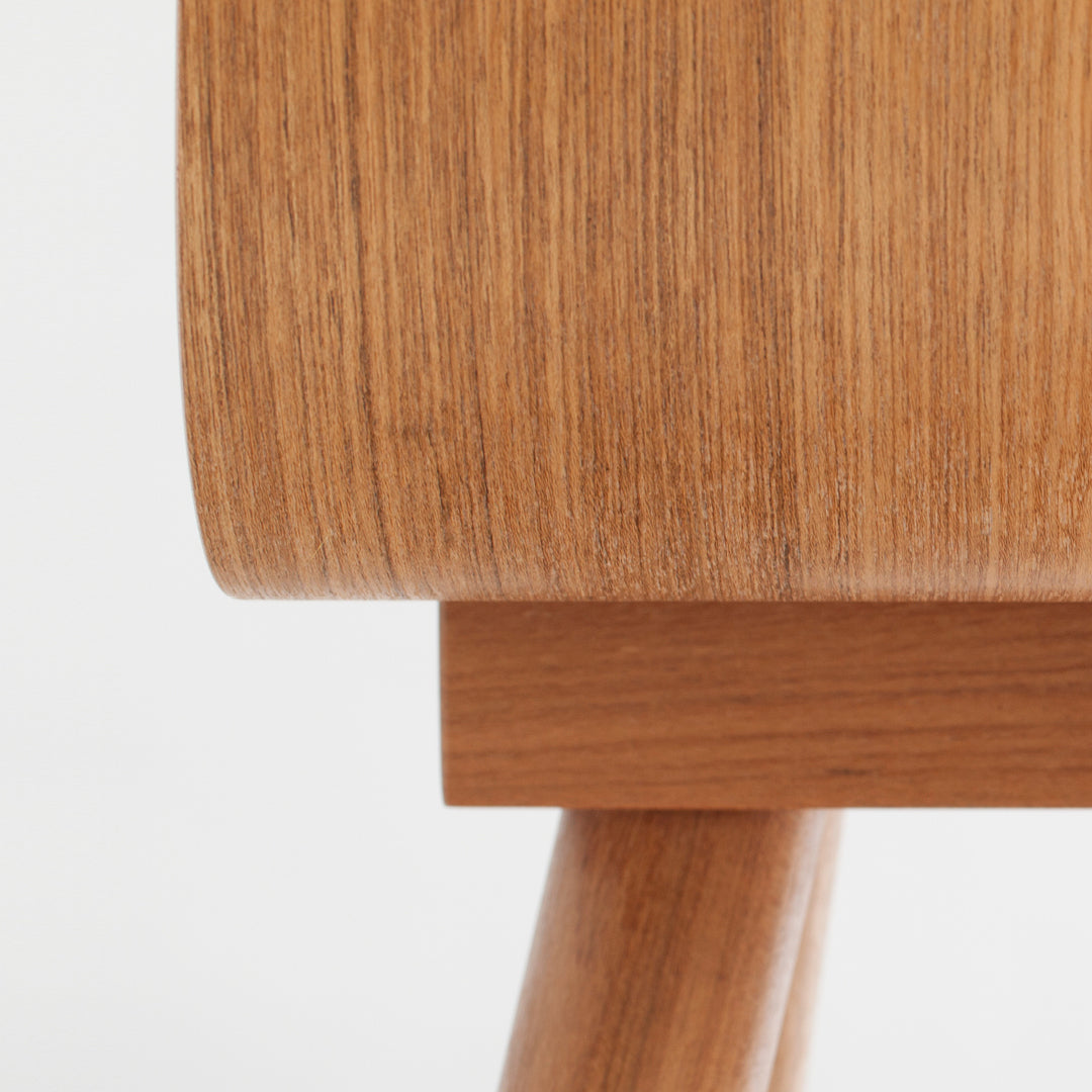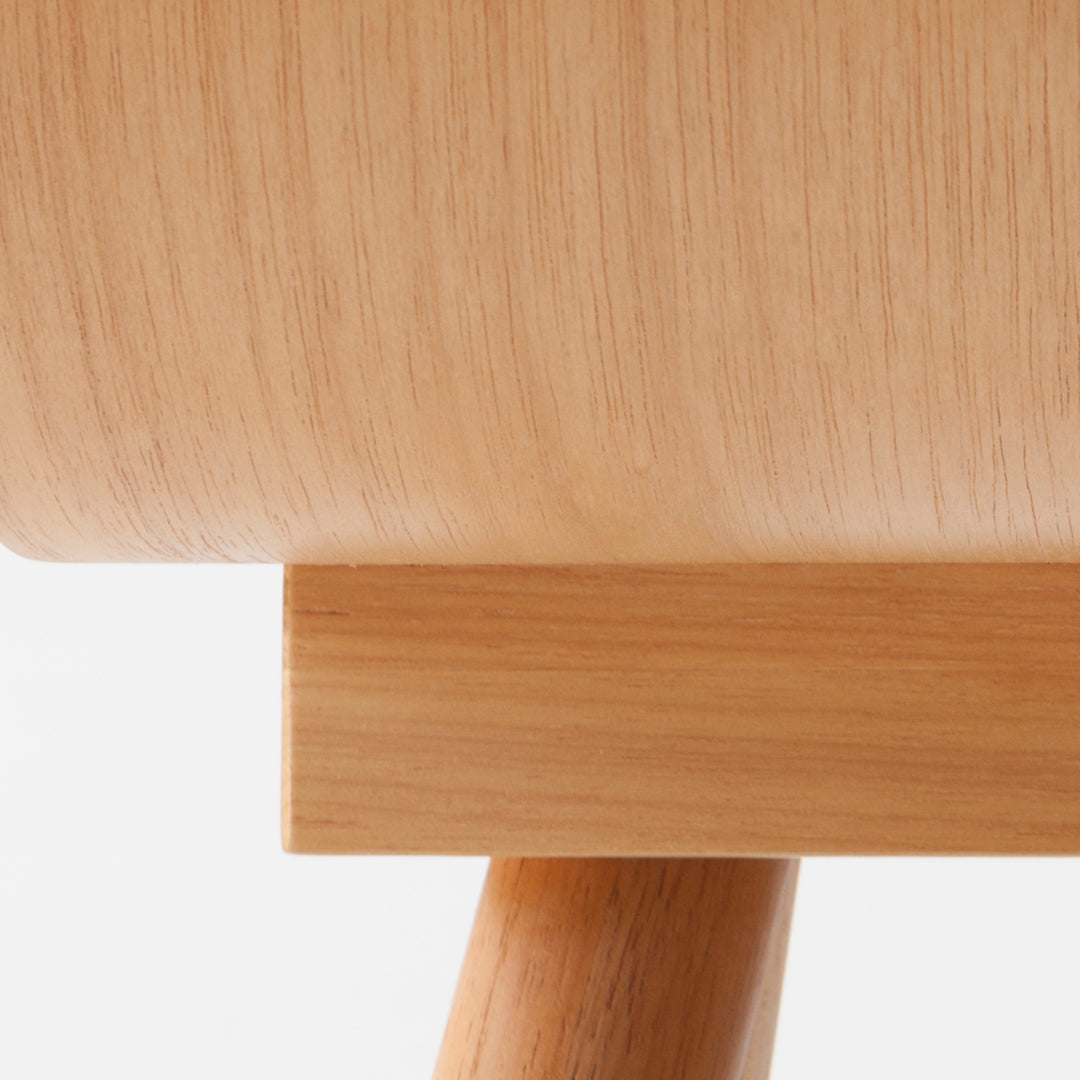 Pernas e encosto em madeira maciça em contraplacado curvo folheado.