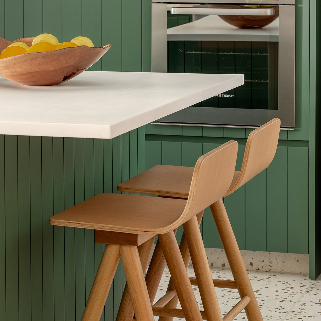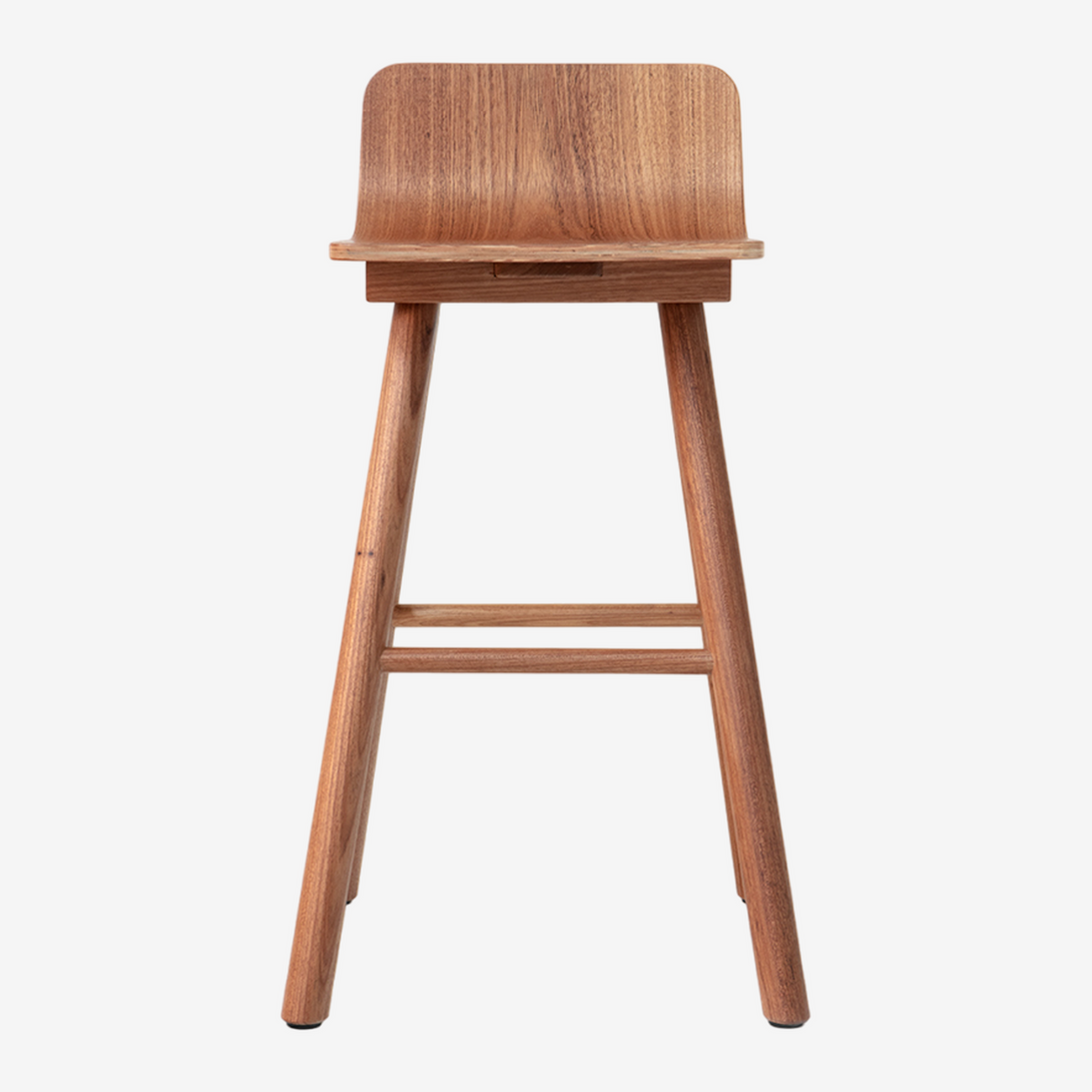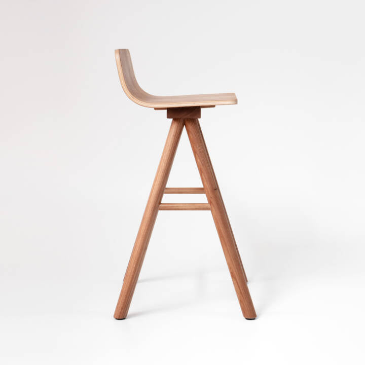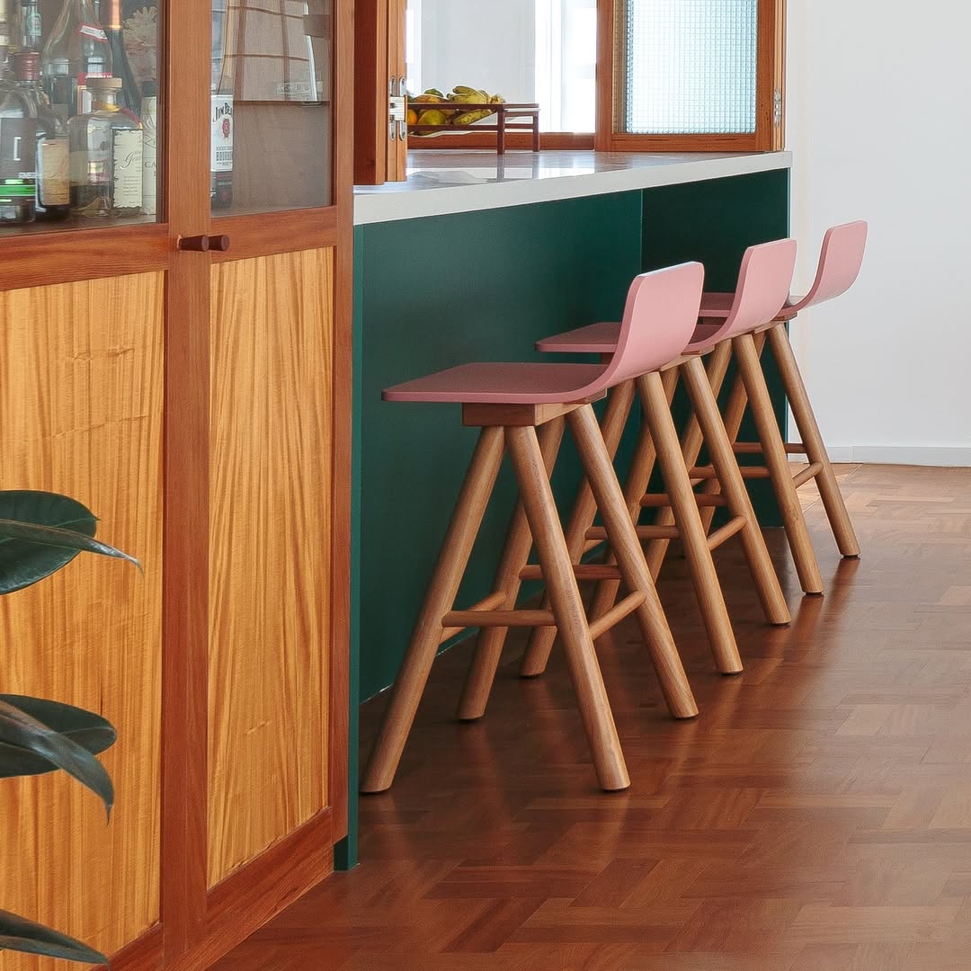 O Banco Alto possui pés de madeira maciça que proporcionam durabilidade e sofisticação, enquanto o encosto é feito de compensado curvo folheado a madeira maciça natural. A utilização de folheado de madeira maciça natural confere à cadeira um acabamento único e elegante, pois cada lâmina de madeira tem o seu padrão e cor únicos. Com design moderno e minimalista, a cadeira é uma excelente opção para espaços que buscam simplicidade e elegância. A qualidade dos materiais utilizados na sua fabricação garantem durabilidade e conforto.