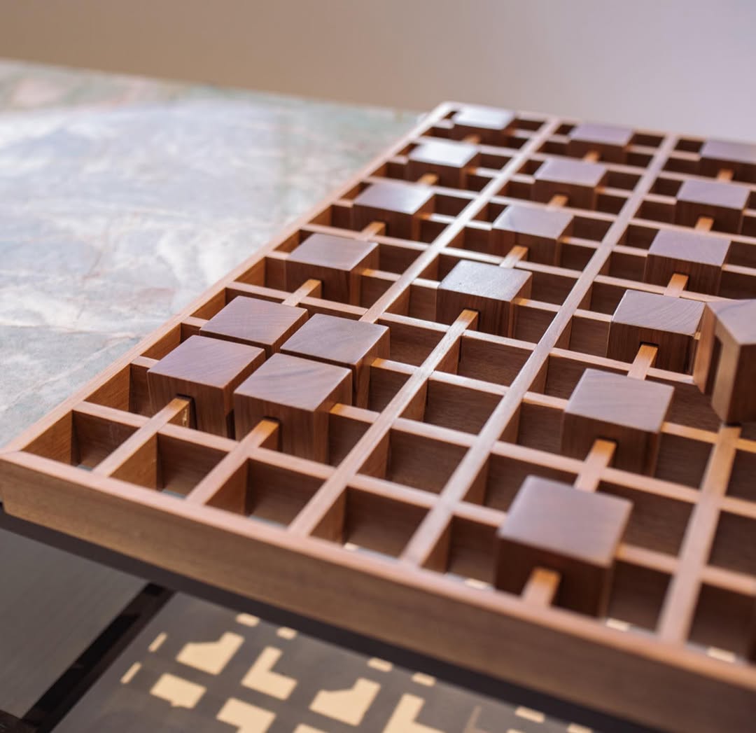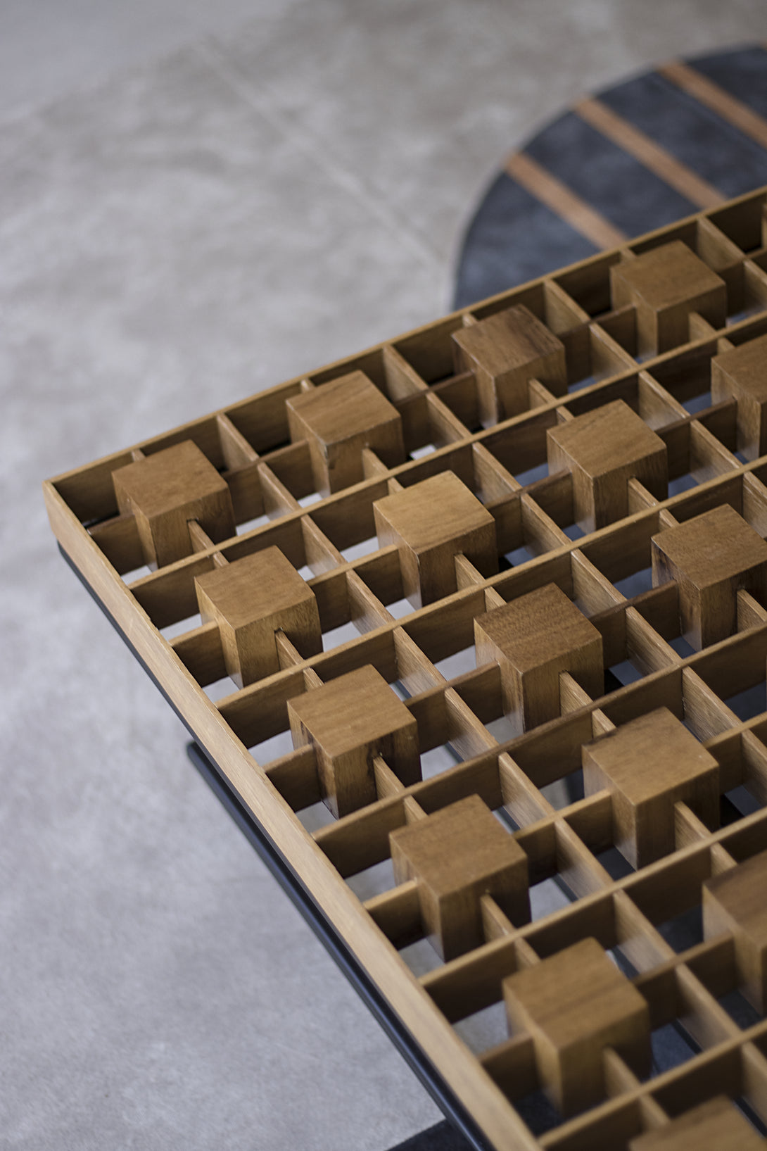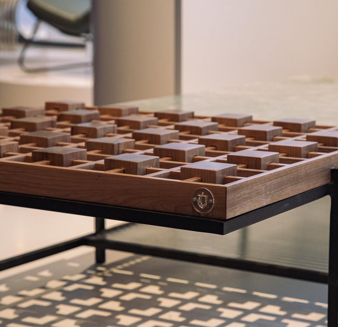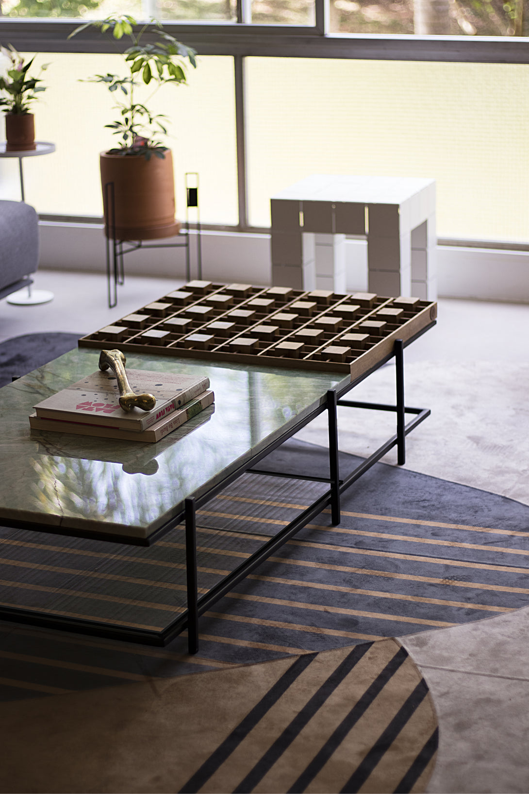 Também da coleção Fachada, essa mesa de centro é um companheiro maior para a mesa lateral, incorporando a mesma inspiração arquitetônica. Sua base de madeira mostra um design minimalista e robusto, baseando -se nos princípios estruturais dos edifícios modernistas. O tampo de vidro fornece uma superfície espaçosa, perfeita para a colocação central em uma sala de estar, acrescentando a funcionalidade e um aceno estético ao legado arquitetônico de Brasília.
