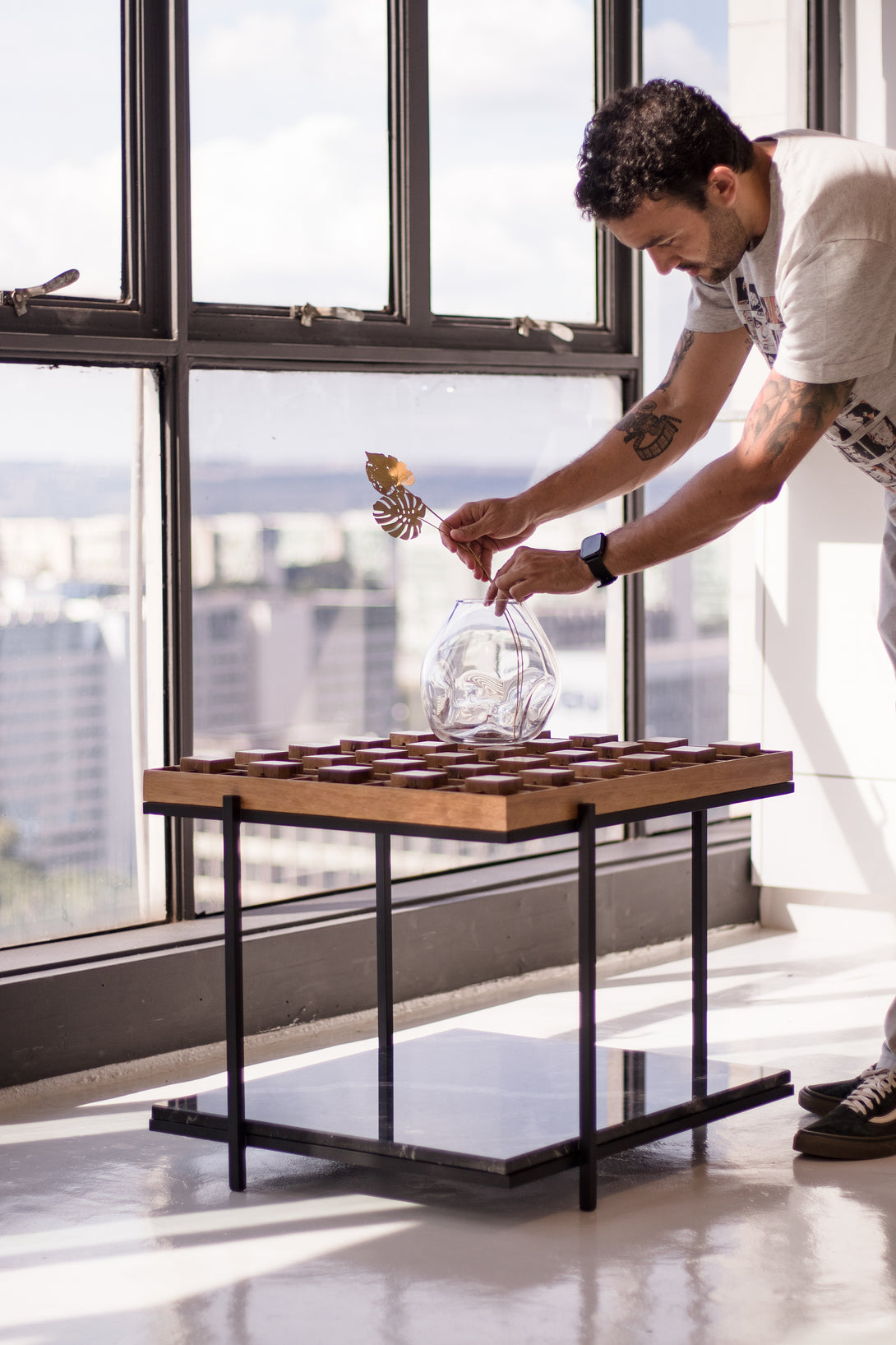 A mesa lateral de Fachada faz parte de uma coleção inspirada na arquitetura modernista brasileira, particularmente os edifícios icônicos de Brasília. O design da tabela reflete a essência do modernismo, com linhas limpas e formas geométricas que ecoam a elegância estrutural desses edifícios.