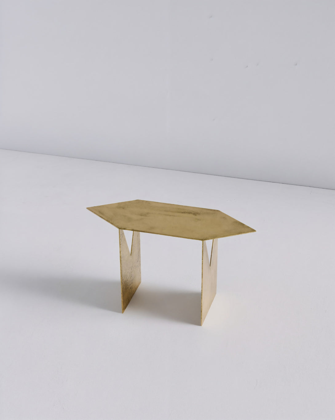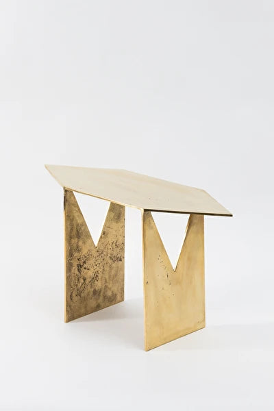 A Mesa Lateral Arado 01 é feita de metal bronze fundido e polido até obter um acabamento suave. Esta mesa apresenta um design único e angular, com uma estrutura de suporte triangular distinta, criando uma peça marcante que combina funcionalidade com expressão artística. A construção em bronze adiciona um toque de luxo e durabilidade, tornando-a uma adição de destaque a qualquer ambiente moderno ou contemporâneo.