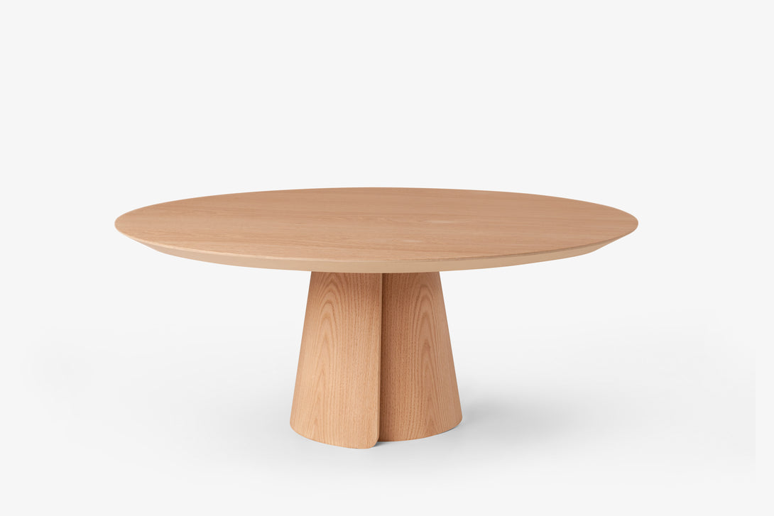 A Mesa Volta faz referência à natureza em sua impermanência. O detalhe da base sugere os movimentos naturais e remete às lógicas construtivas da natureza, enquanto a superfície com veios evidentes da lâmina de madeira natural reforça o conceito orgânico da peça. A mesa de centro também pode servir como mesa lateral, individualmente ou em pares com as outras peças da coleção.