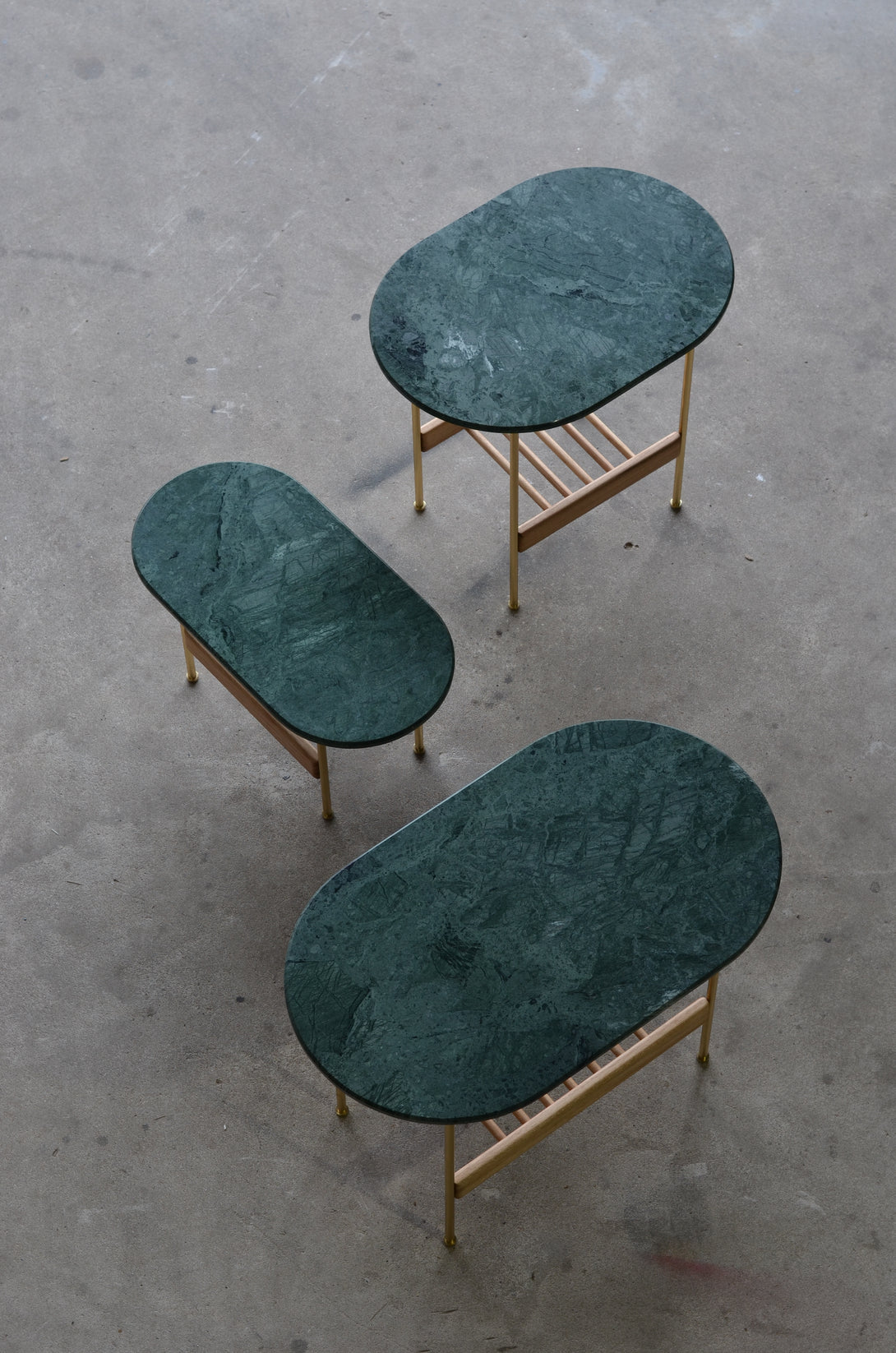 Sua estrutura pode ser feita em aço inoxidável (polido, escovado, rosa ou dourado) ou com acabamento em pintura eletrostática nas cores preta, branca, cinza, verde e marrom. Os tampos podem ser de pedra, vidro ou mármore, e estão disponíveis em formatos circulares, ovais ou quadrados.