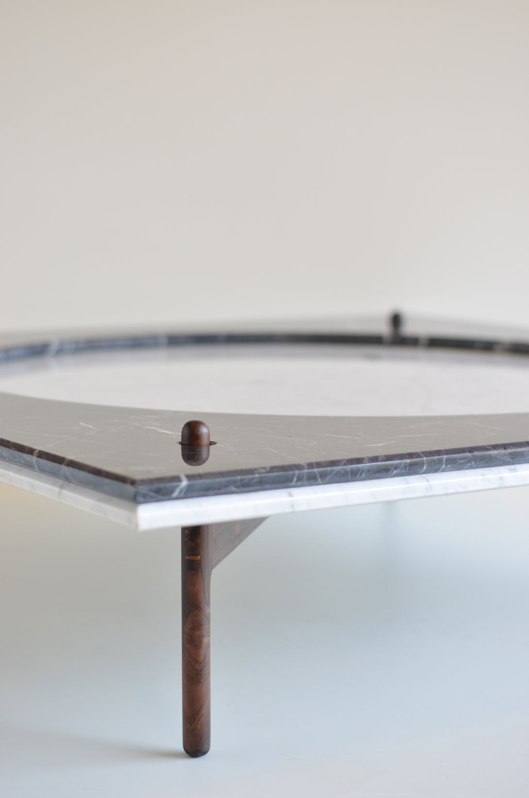A mesa de centro Interseção é construída em vários comprimentos, profundidades e alturas. É inteiramente feita de madeiras maciças. Os tampos podem ser de mármore ou outras pedras. Seus preços podem variar de acordo com os acabamentos e comprimentos escolhidos.
