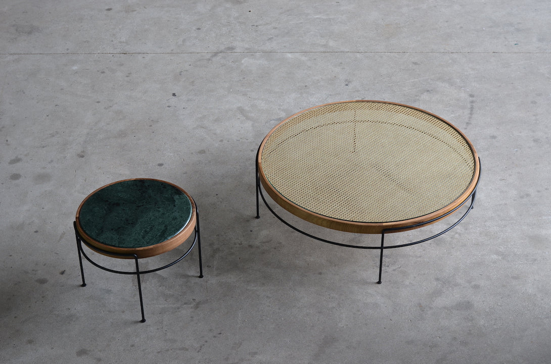 É inteiramente feito de madeiras maciças. A estrutura pode ser em aço inoxidável (polido, escovado, rosa ou dourado) ou pintura eletrostática nas cores preta, branca, cinza, verde e marrom. O tampo pode ser feito de palha preta natural ou sintética, ambas trançadas à mão, mármore ou vidro.