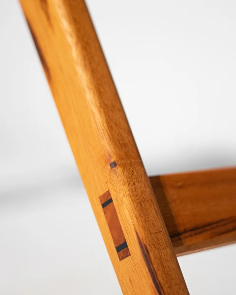 Produzido inteiramente em madeira maciça de Muiracatiara. Acabamento com óleos naturais e ceras para uso em ambientes internos.