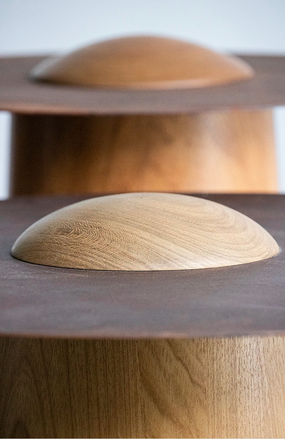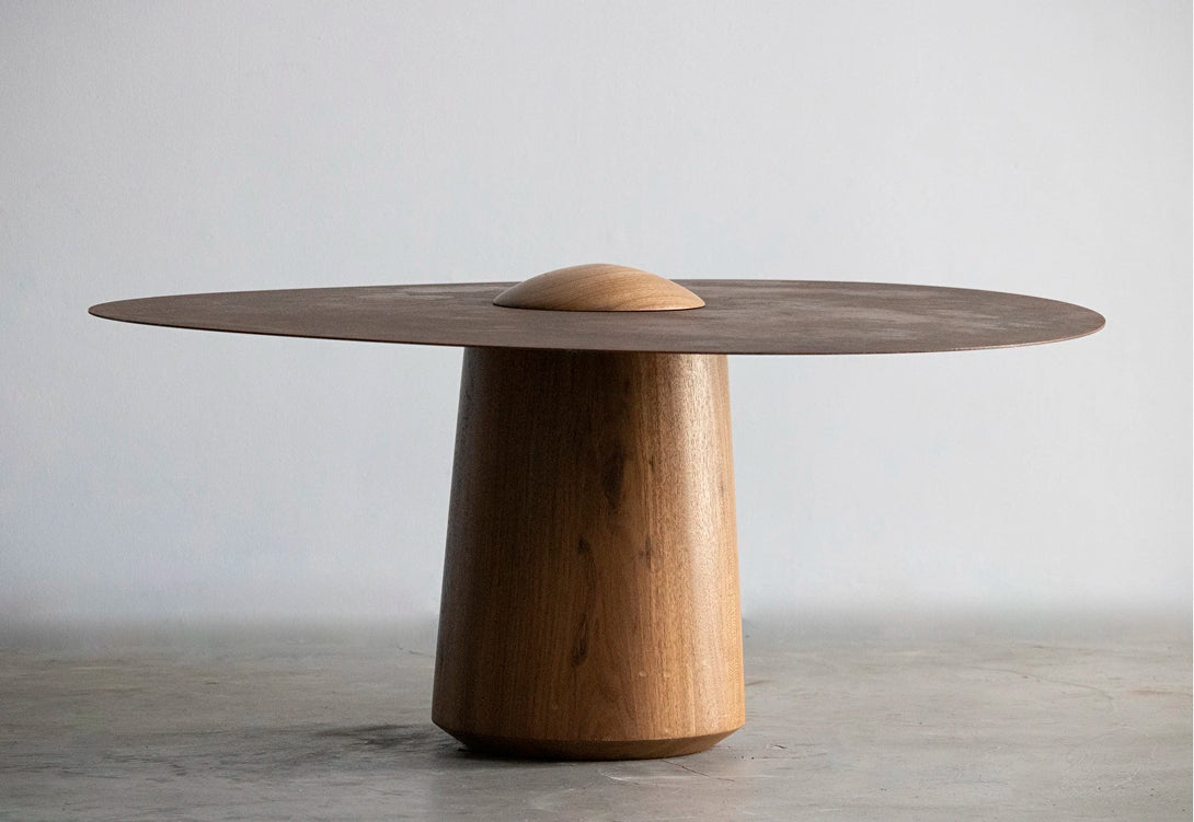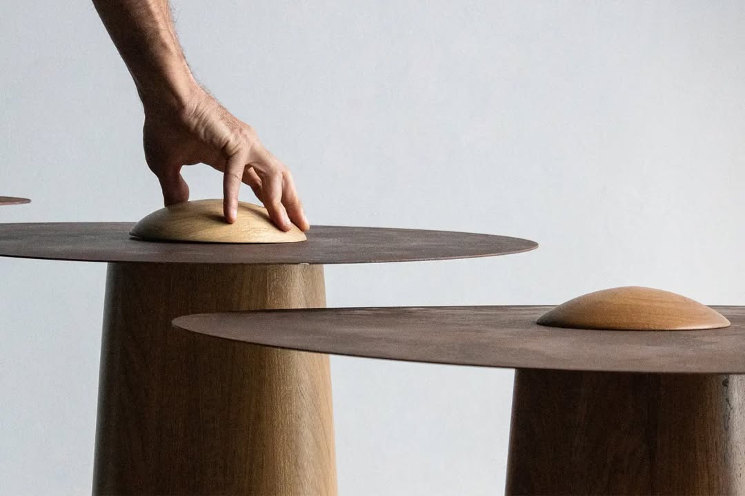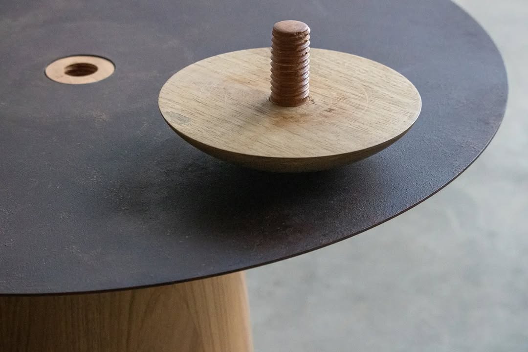 Apresentamos a Mesa de Centro Tempo Rei - Fabricada em madeira Cedro Rosa, Aço Corten e acabamento com verniz à base de água. Os diversos diâmetros e alturas permitem que seja utilizado em conjunto, formando uma grande mesa de centro para ambientes amplos, ou separadamente, cumprindo funções distintas.