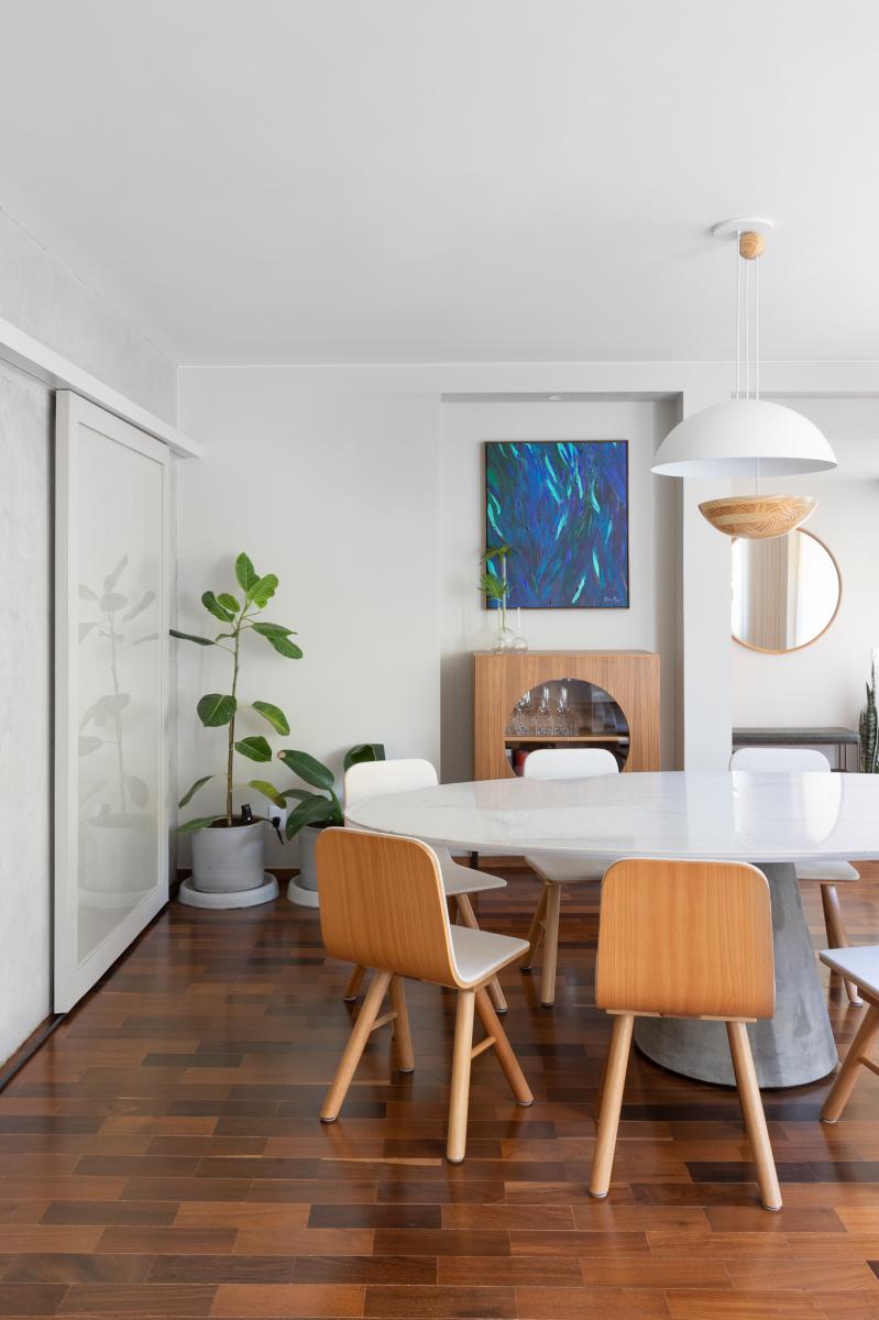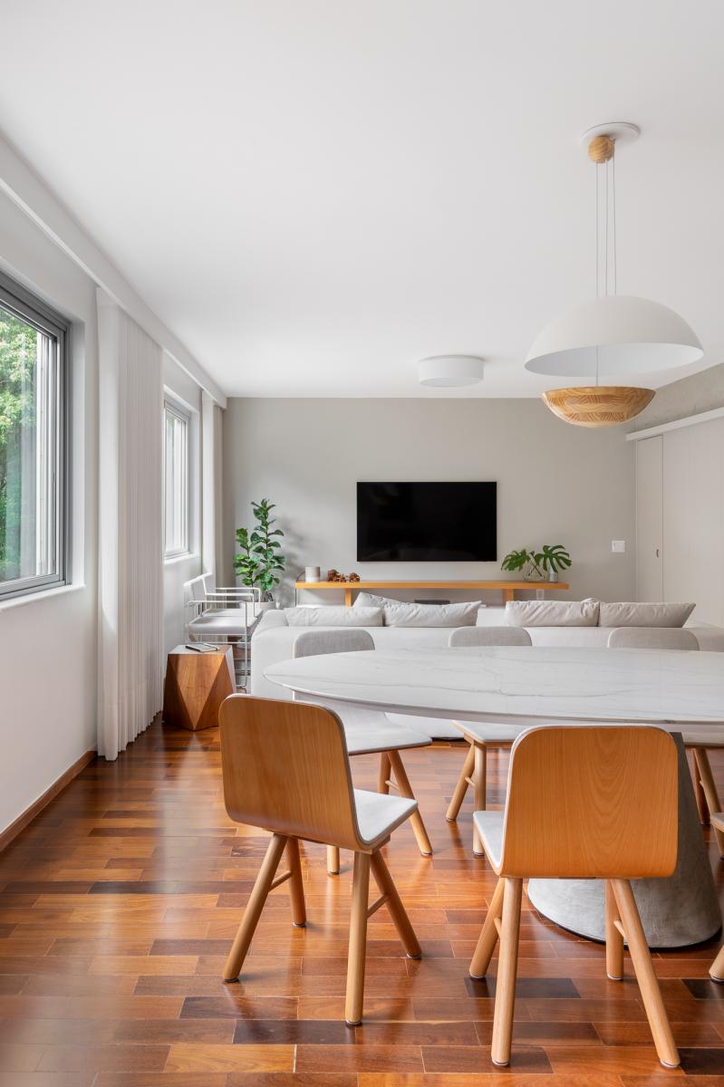 A cadeira possui pernas de madeira maciça, proporcionando durabilidade e elegância, enquanto o encosto é feito de compensado curvo folheado a folheado natural. O acabamento em verniz acrílico fosco confere toque macio e sofisticado à peça. É importante ressaltar que a madeira natural utilizada na cadeira possui padrão e tonalidade únicos, tornando cada objeto único e diferente das fotos de referência do site. A cadeira é recomendada para uso interno, devendo-se evitar a exposição direta ao sol.