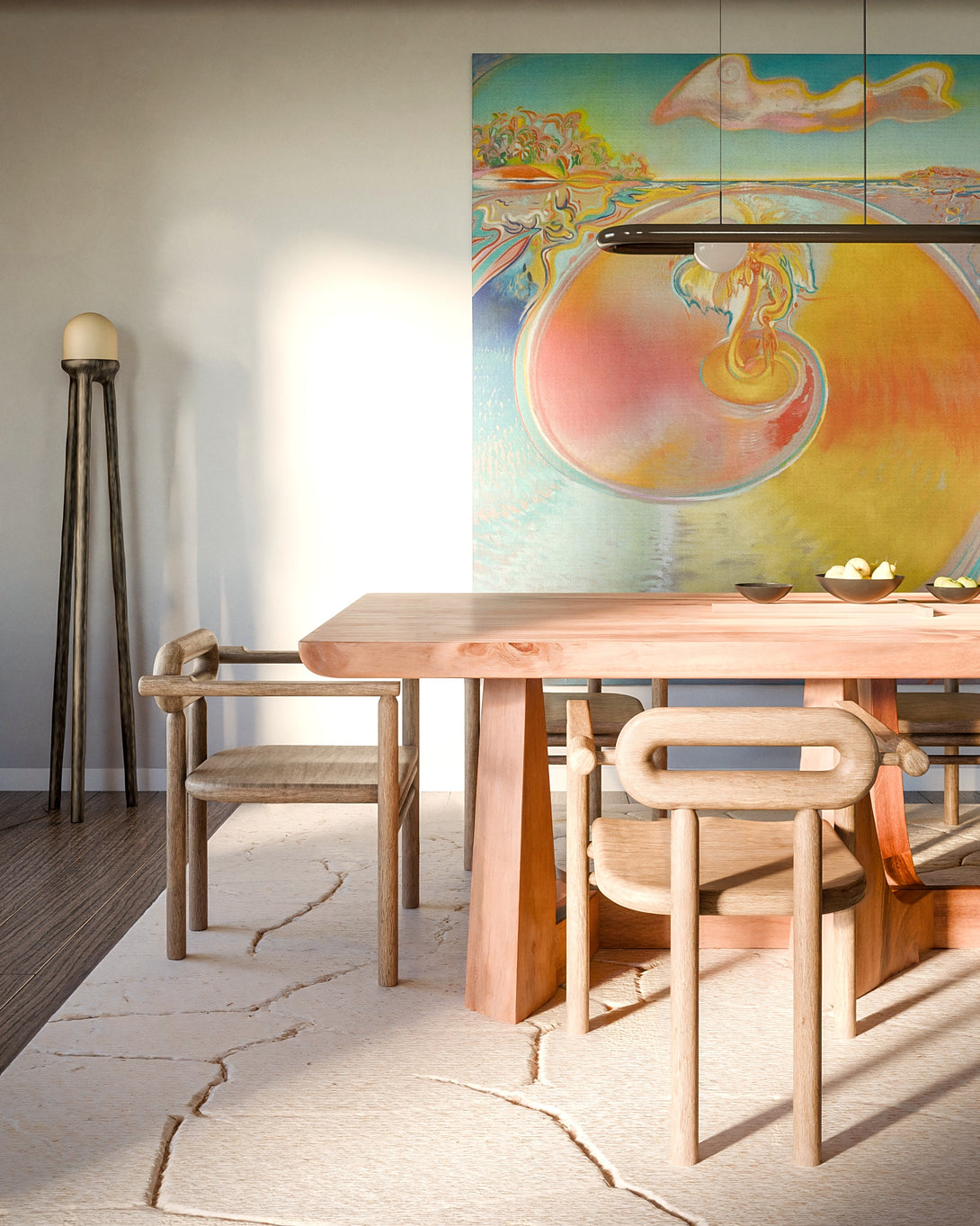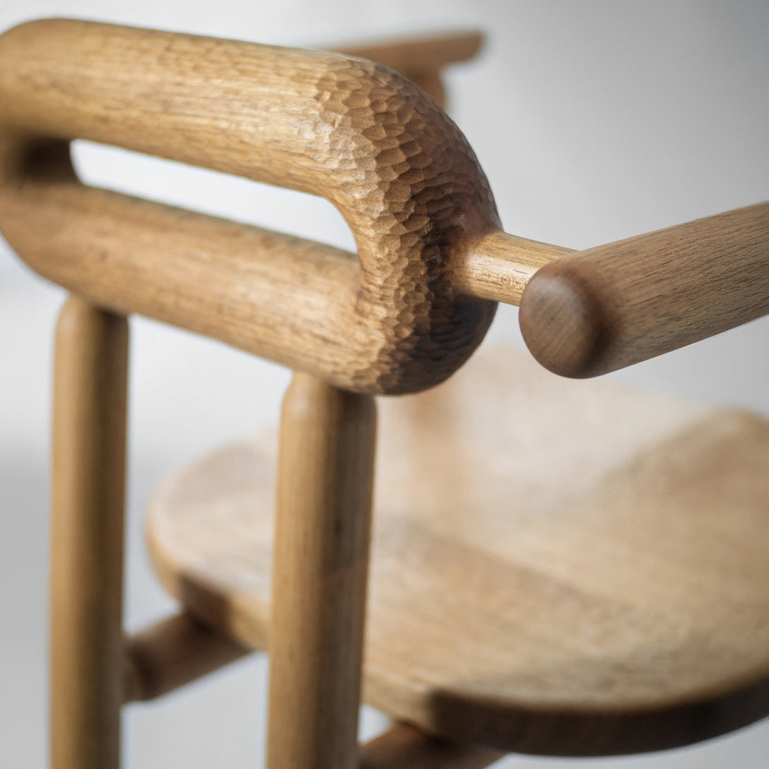 Crafted entirely from solid wood with hand-carved textures, this piece embodies the essence of the studio, honoring the handmade process. Whether around a dining table or as a statement piece in any space, the Castanha chair brings a balance of form and comfort.
