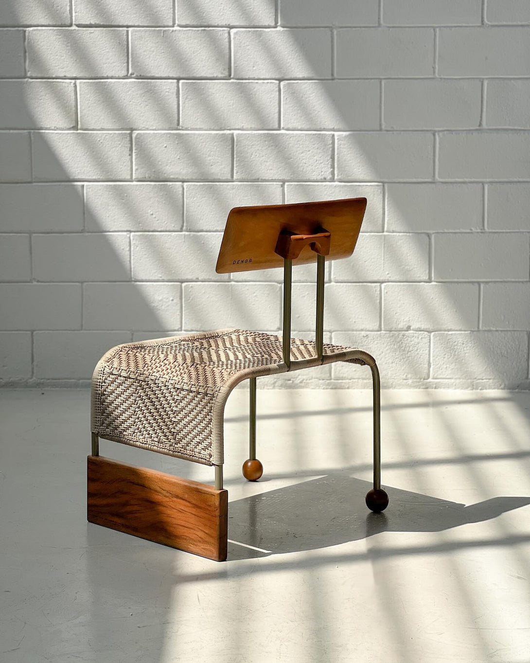 The structure is made of galvanized carbon steel or stainless steel. The backrest and legs are crafted from reclaimed wood, cumaru, or ipe. The weave is made of UV-protected polypropylene cord, offering resistance to light and halogen elements. The finish is electrostatic painting. Customized product.