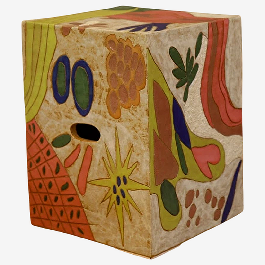 The artist’s exuberant aesthetic emerges from hybridized concepts drawn from diverse beliefs and cultural sources. Natural motifs and patterned elements are repeated throughout her sculptures, which are always infused with functionality. In her clay manipulation process, Juliana appropriates rigid forms covered in a symphony of colors, resulting in pieces that convey a narrative questioning the contemporary human experience within a world that is both naturally unpredictable and increasingly mechanized and dissonant.