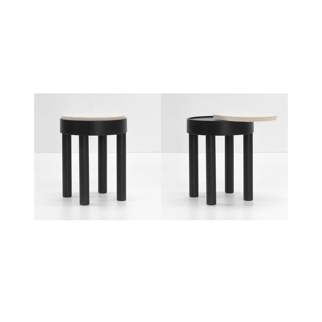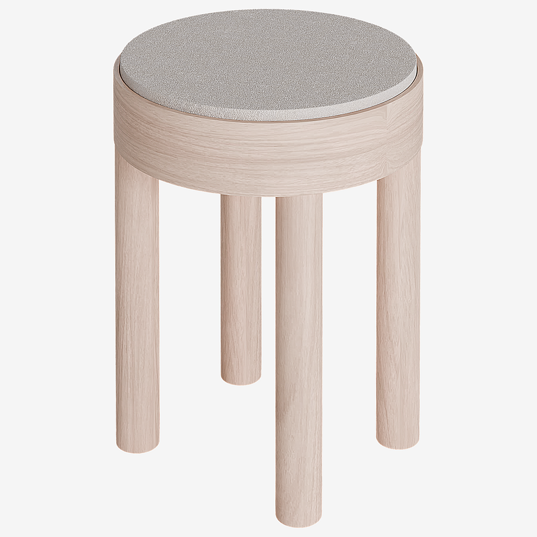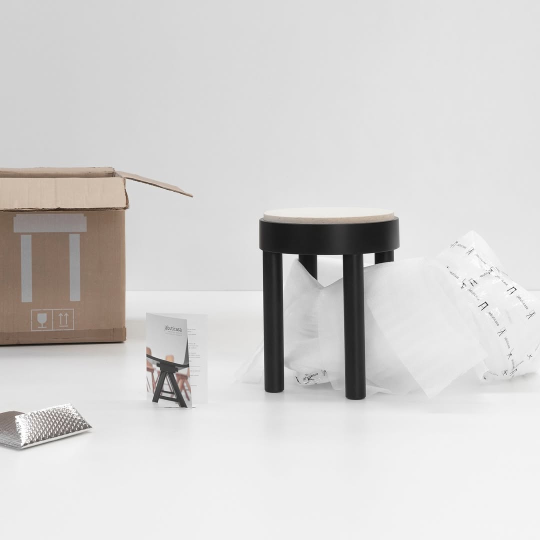 É o resultado da combinação da madeira maciça e do feltro. Seguindo uma estética minimalista, este objeto integra-se facilmente ao ambiente. Pode ser usado como banquinho ou como mesinha. Basta retirar o assento de feltro e utilizar a superfície de madeira para apoiar objetos ou uma taça de vinho.