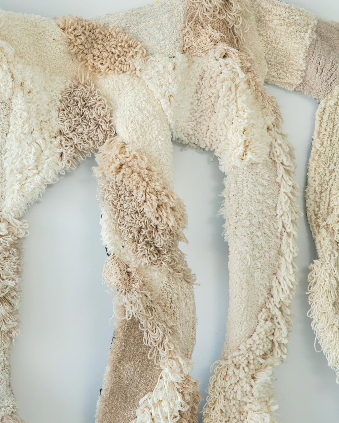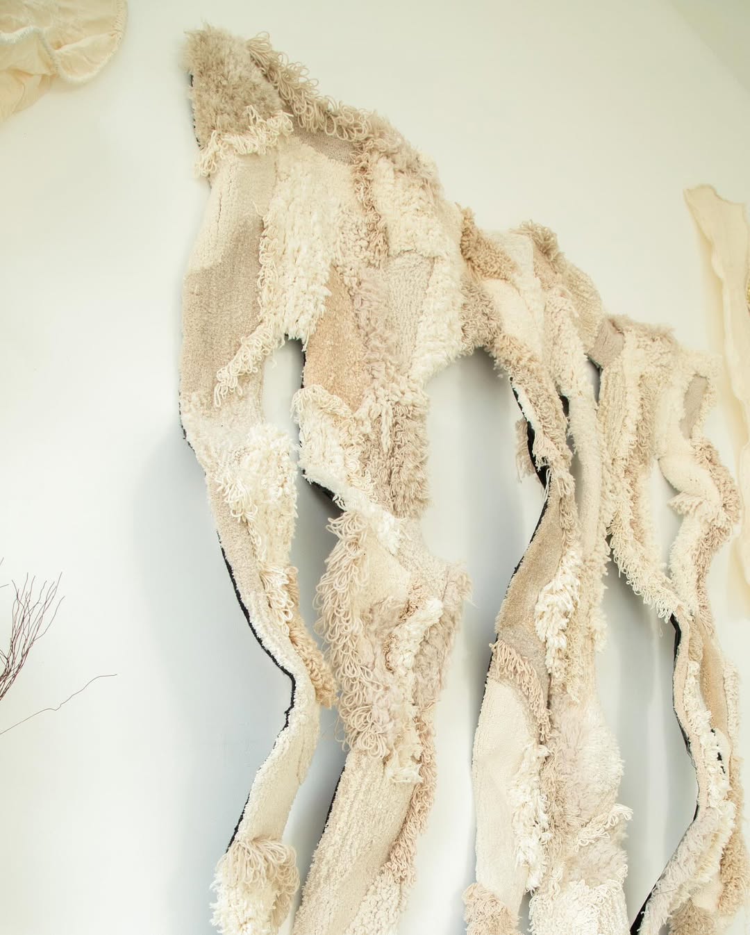 Soft cotton and natural wool provide warmth and texture, silk adds fluidity and a refined sheen, while the copper details introduce depth, contrast, and subtle reflections. Each element is meticulously arranged to weave a narrative of tradition, innovation, and contemporary aesthetics, making the Escultura01 Wall Tapestry a true statement piece that celebrates cultural heritage in a timeless design.