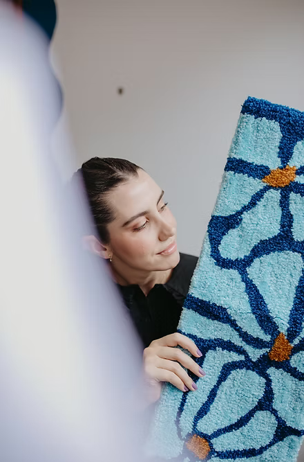 Flowers Rug — Decorative rug for floor or wall, made from a blend of synthetic and natural wool. Its floral design brings softness and personality, creating a standout feature in the space with texture and artisanal charm.