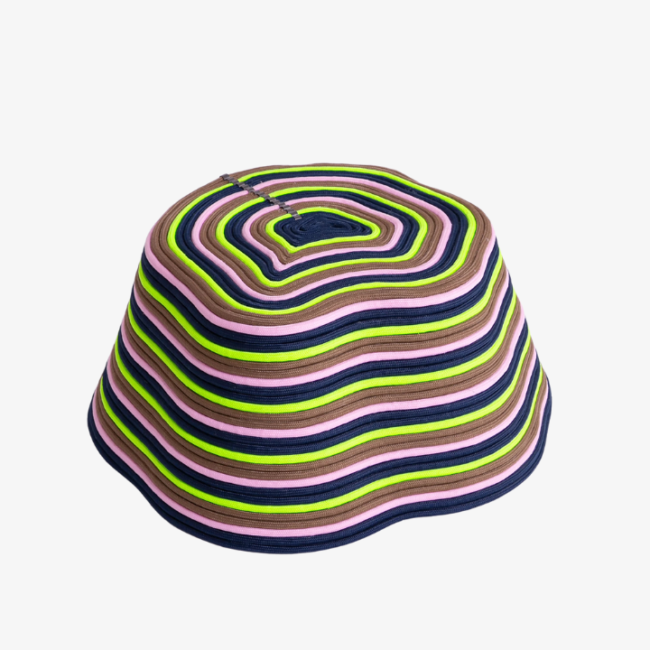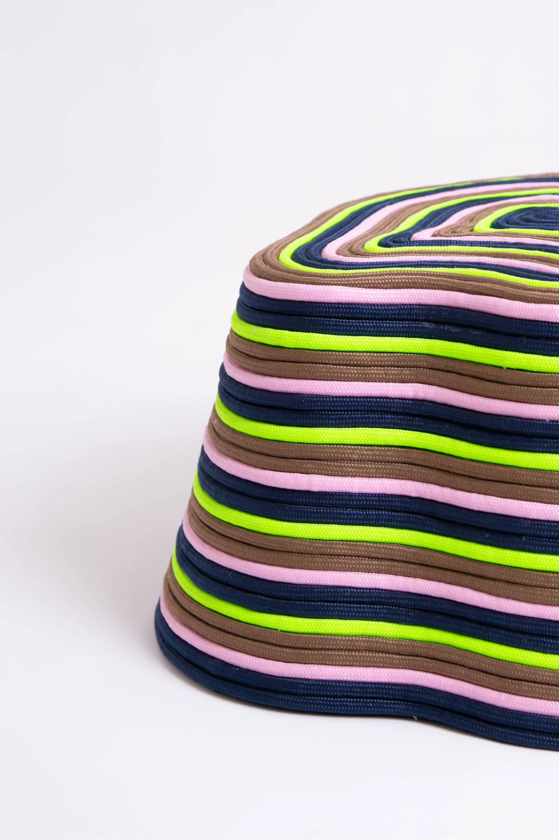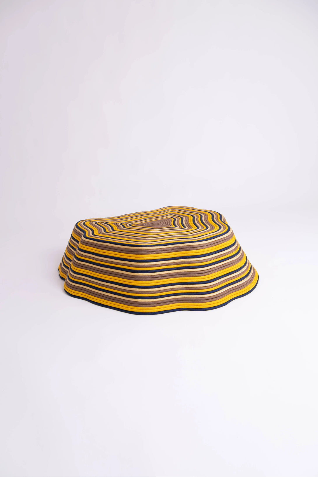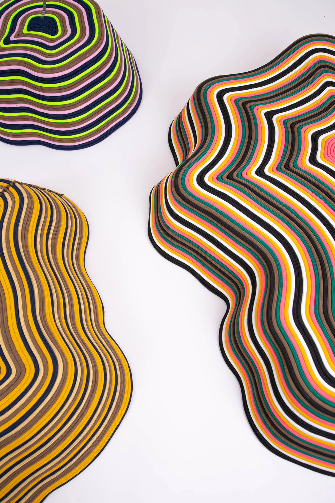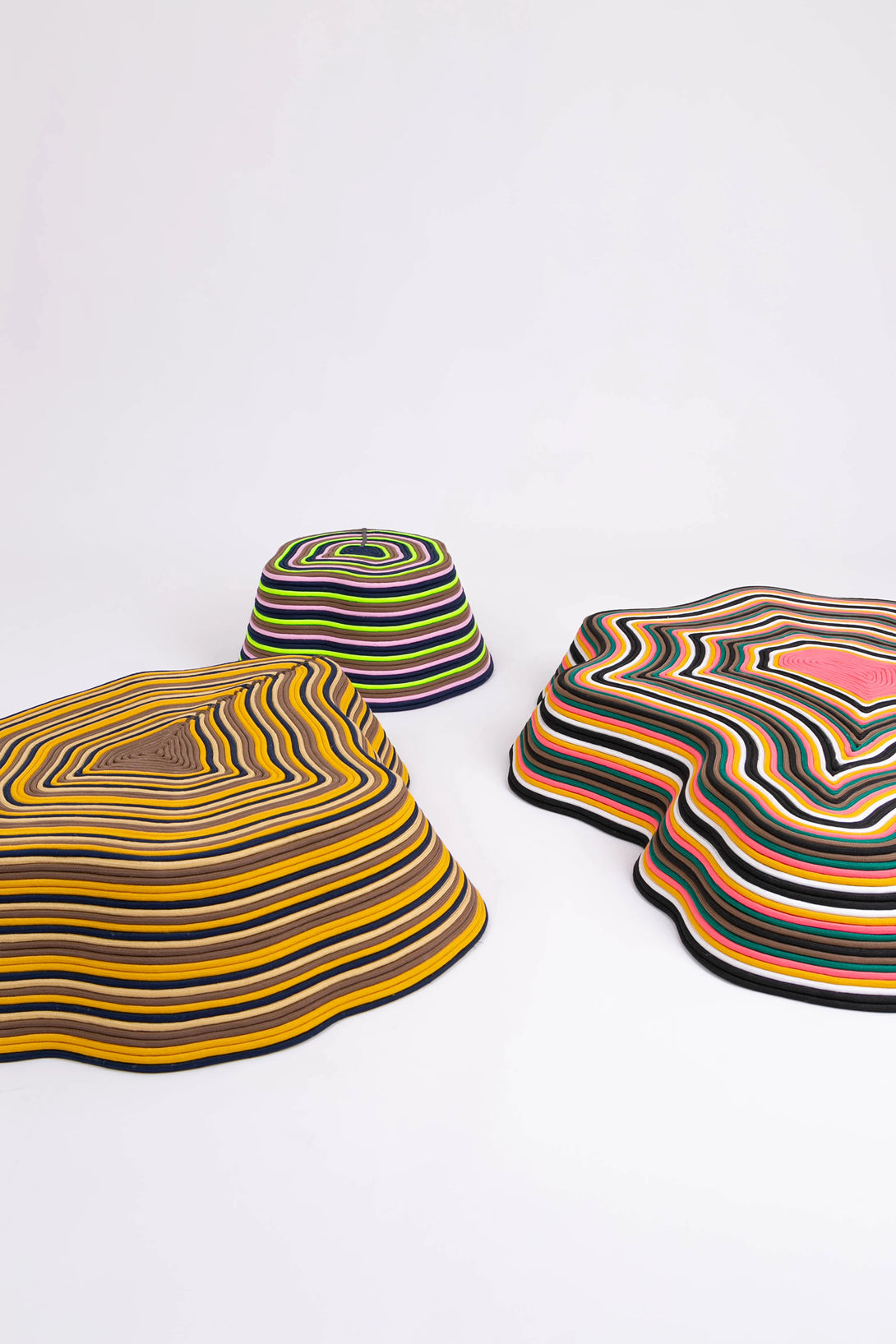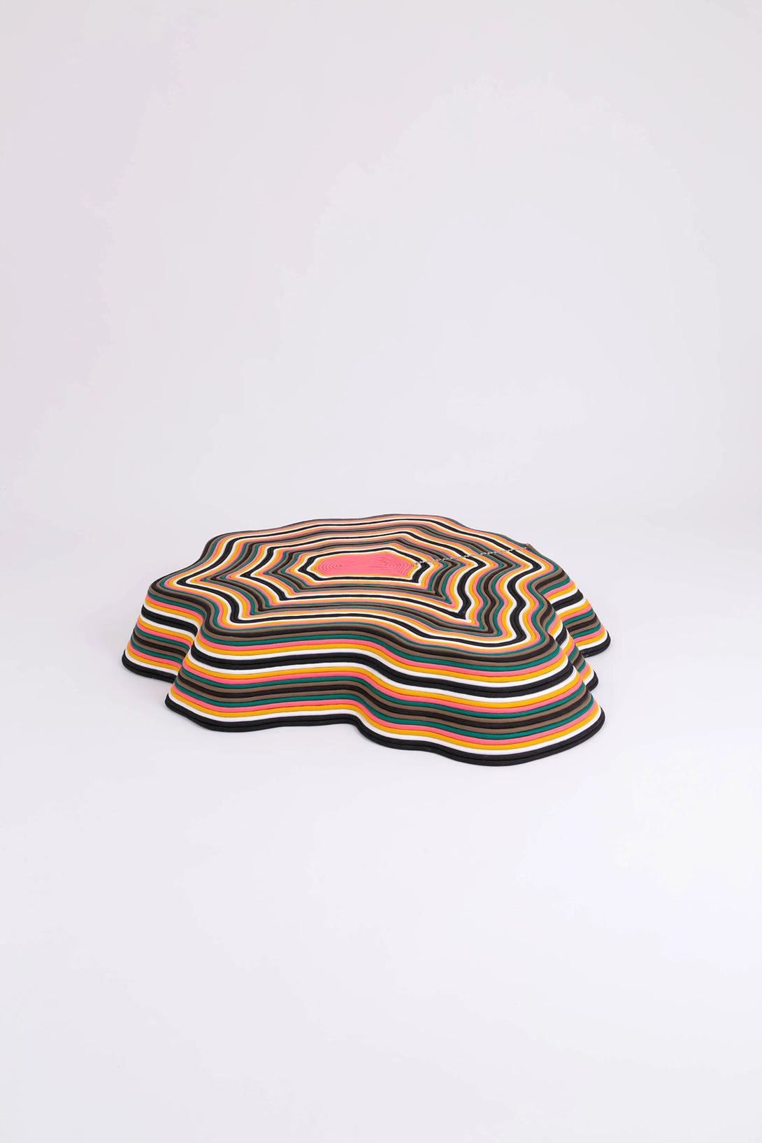 The TRONCO tables arise from the concept of a tree trunk cut transversely, revealing its rings. The ropes are skillfully inserted into the piece, forming a harmonious composition, following the sinuosity of the trunk and its rings, which, in turn, captivate the observer's gaze with vibrant colors. Inspired by conventional coffee tables, the TRONCO tables dispense with the direct use of wood and incorporate eccentric colors and shapes that evoke the appearance of a tree trunk. The ropes, made from recycled PET filaments, are the protagonists of this free interpretation by the designer.